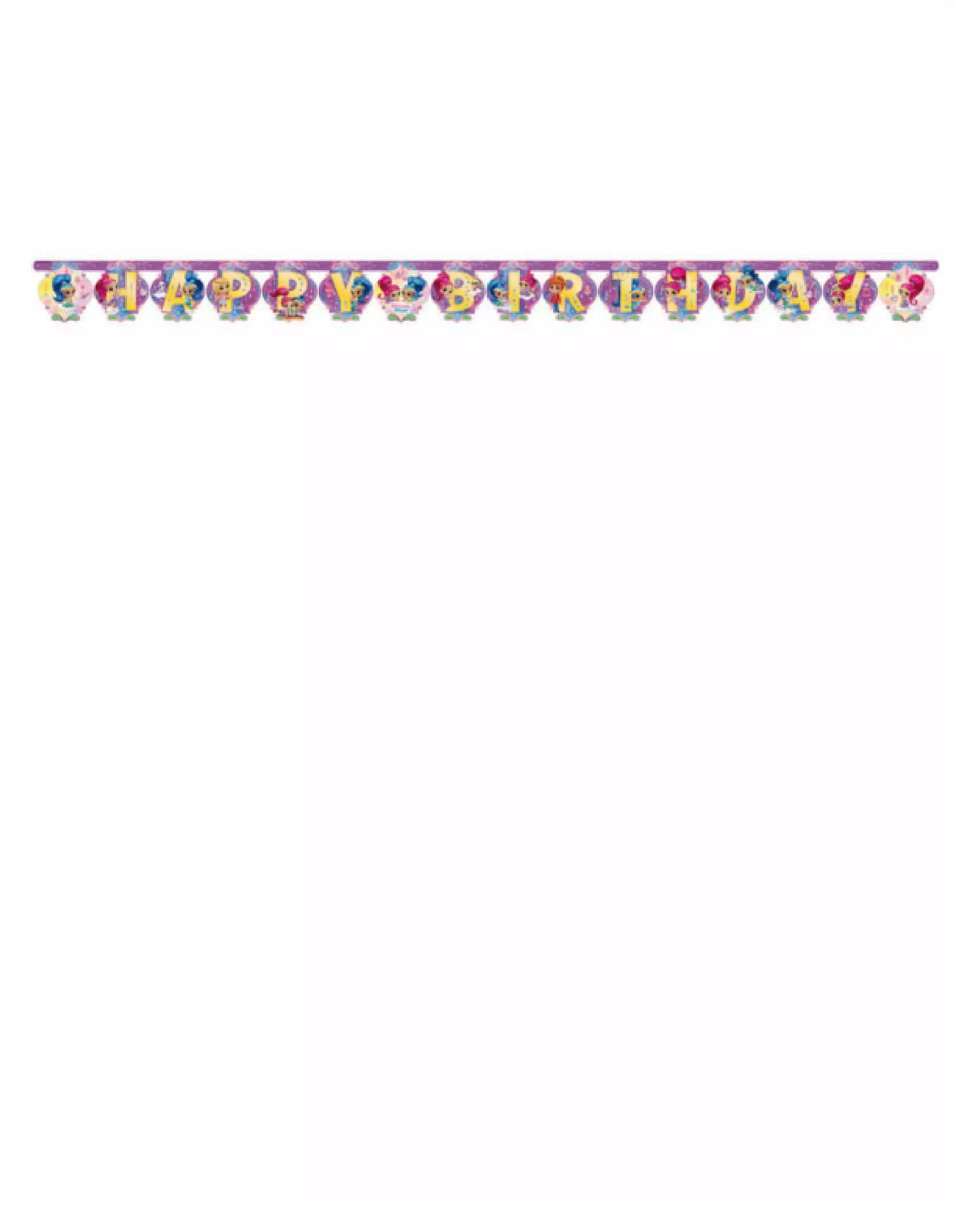 De to Shimmer- og Shine-tvillingene kommer til bursdagen din! Dette banneret er offisielt lisensiert av Shimmer and Shine®. Det måler omtrent 200 x 15 cm. Det er flerfarget og har påskriften «Gratulerer med dagen» med trykte vignetter av de to søte tvillingene i hver ende. Dette banneret vil være perfekt for å dekorere datterens bursdagsrom og gjøre henne lykkelig! Inkludert tilbehør: 1 girlander Materiale: Papp