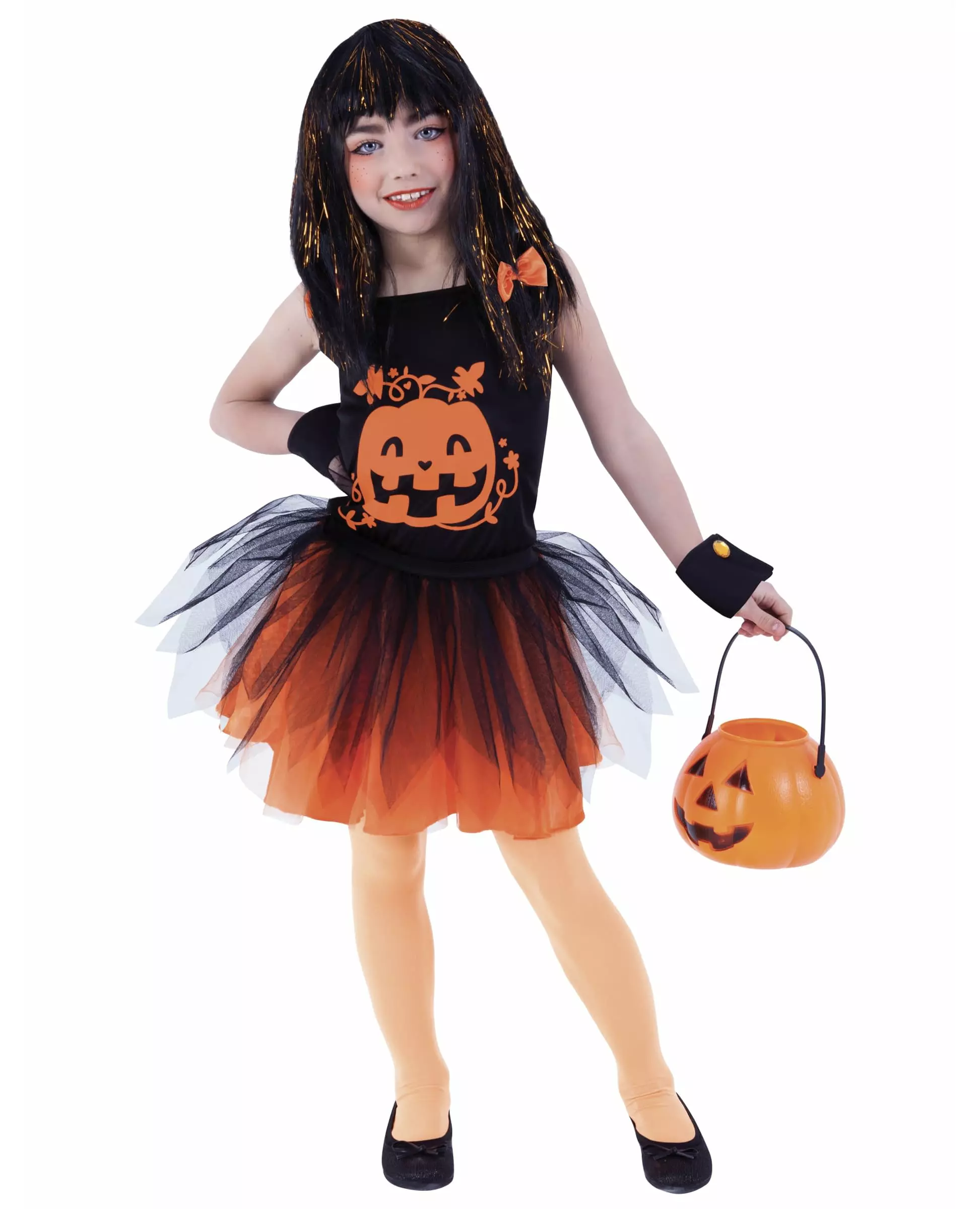 Et gresskarkostyme for jenter! Dette gresskarkostymet for jenter består av en topp, en tutu, to armbånd og et par strømpebukser (veske og parykk er ikke inkludert). Toppen er en svart t-skjorte med et oransje gresskar trykt på. To svarte armbånd med en oransje knapp på hver side fullfører toppen av dette kostymet. Den oransje stofftutuen har svart tyll sydd på. De oransje strømpebuksene vil fullføre antrekket perfekt! Dette kostymet vil være perfekt for en Halloween-fest! Produktnummer 302937 Tilgjengelighet 3 til 4 år (90 til 104 cm) 302937, 8 til 10 år (123 til 140 cm) 302933, 5 til 7 år 302935, Stell og vask Håndvask Tilbehør inkludert Topp - Tutu - Armbånd - Strømpebukser