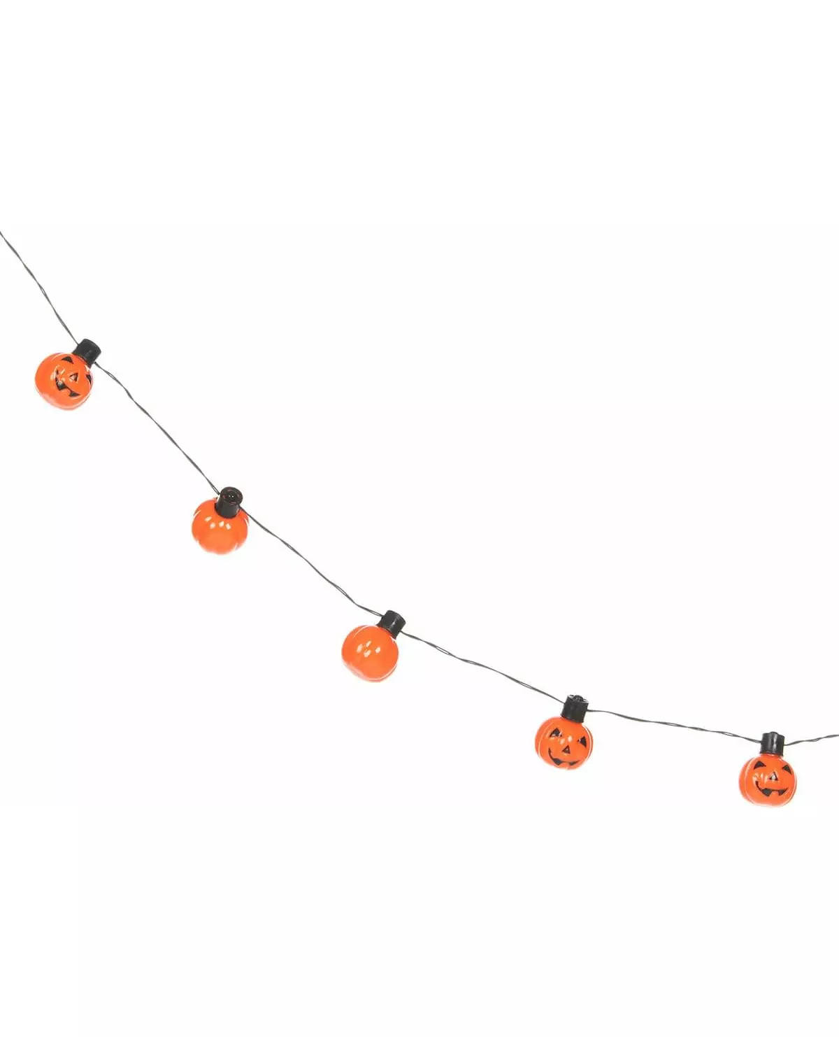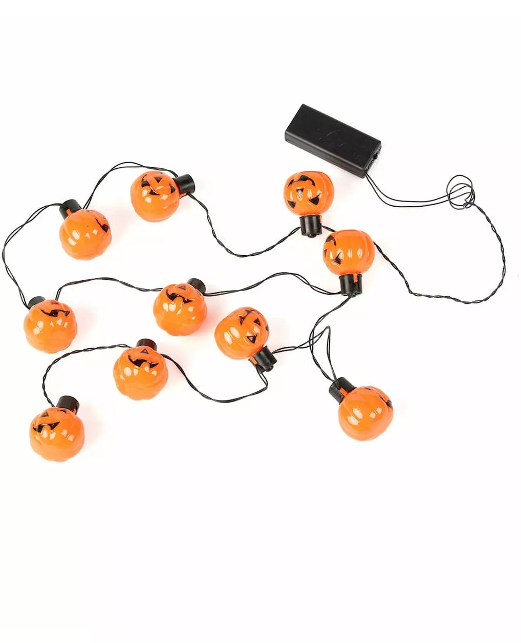 Lysende gresskar for en fantastisk Halloween! Denne svarte Halloween-girlanderen er dekorert med små smilende oransje gresskar. LED-pærer er integrert i gresskarene for å lyse opp dekorasjonen din. Den er lysende og måler 175 cm. Du trenger 2 AA-batterier som ikke er inkludert. Denne lysende dekorasjonen vil være perfekt for å lyse opp interiøret ditt på Halloween-kvelden! Inkludert tilbehør: 1 girlander Materiale: Plast