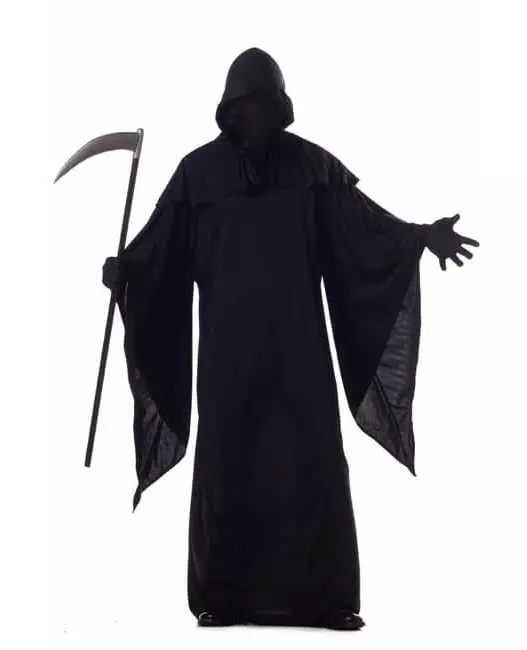 Denne Halloween skal du høste sjeler! Dette Grim Reaper-kostymet for voksne består av en kjole med hette og maske. Den lange kjolen er svart, med lange, utsvingte ermer. Den vil dekke hele kroppen din. Hetten og masken lukkes med borrelås, slik at du kan skjule ansiktet ditt. Dette Grim Reaper-kostymet vil være perfekt for å skremme forbipasserende på Halloween-kvelden. Inkludert tilbehør: Kjole Hettemaske Materiale: 100 % polyester Pleie: Håndvask