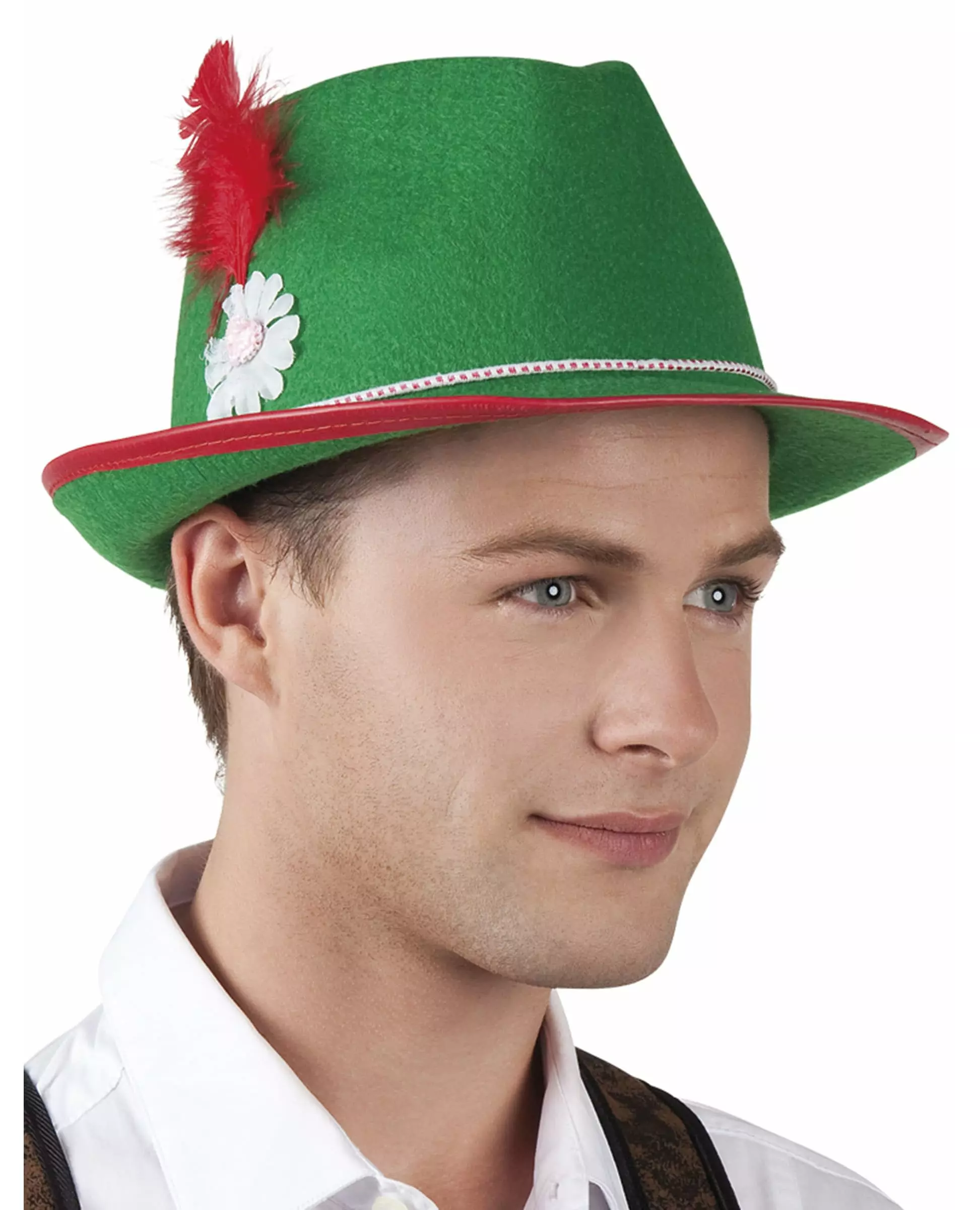 Autentisk! Denne grønne bayerske hatten for voksne har en rød kant rundt hatten og en falsk fjær på siden. Dette tilbehøret er ideelt for å fullføre ditt bayerske kostyme på et utkledningsarrangement eller med temaet Tyskland, Østerrike eller Oktoberfest for eksempel. Inkludert tilbehør: Hatt Materiale: Filt-effekt papp 100 % polyester 100 % polyester