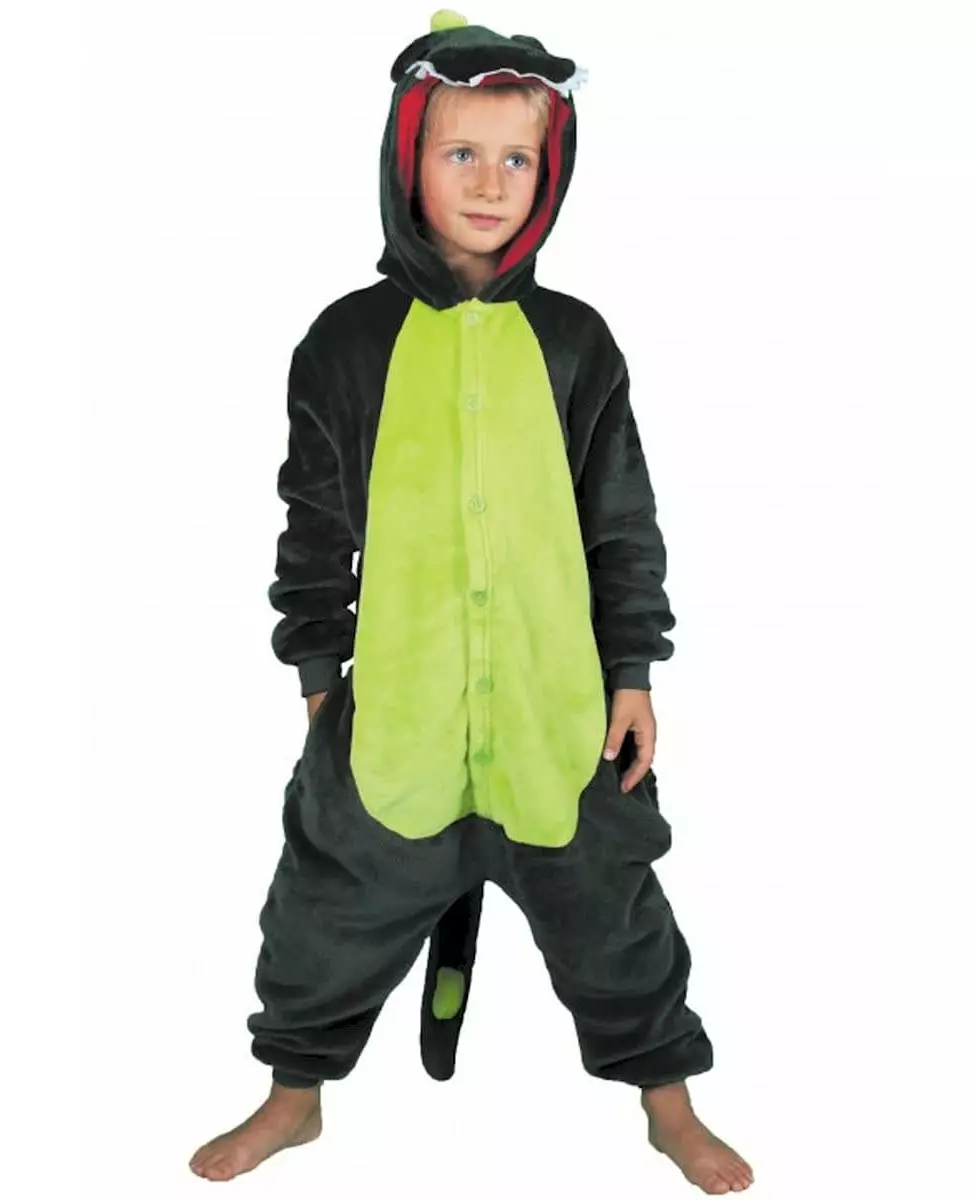 Grønn dinosaur-jumpsuit-kostyme til barn