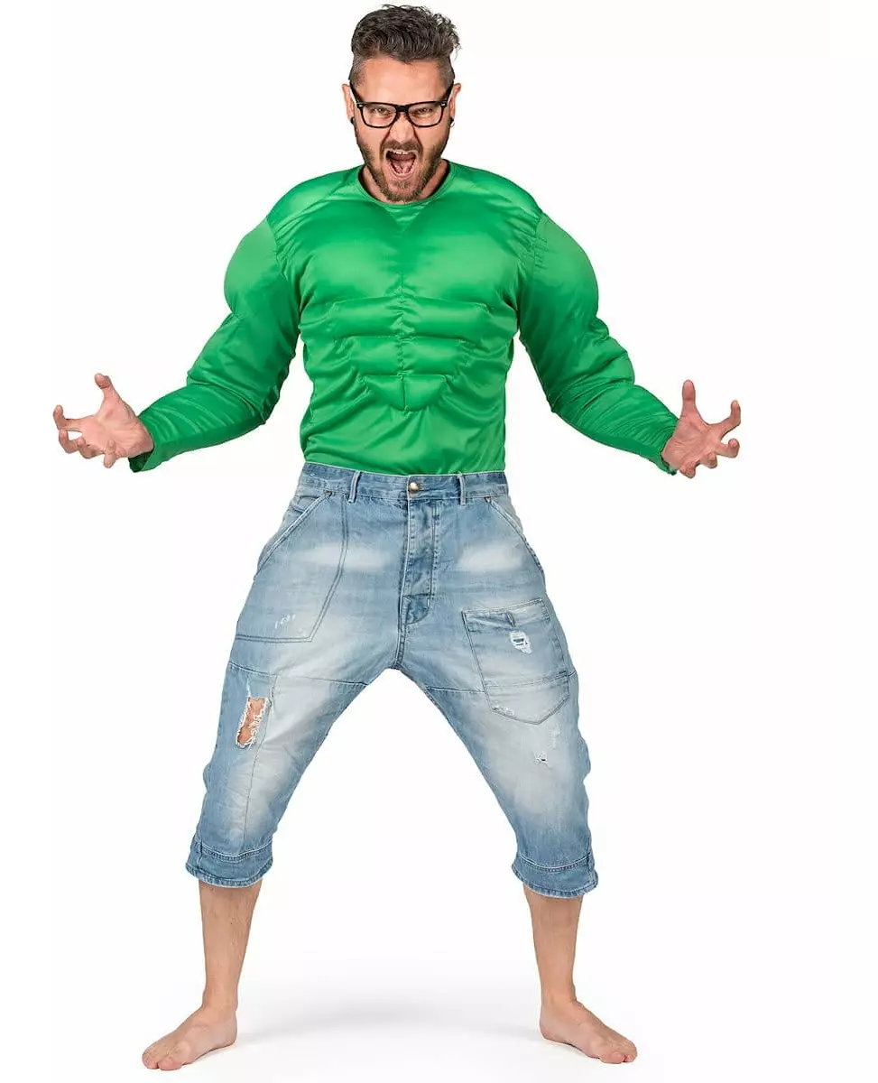 Klar for forvandlingen! Denne grønne muskeltoppen er for voksne (bukser, belte og sminke er ikke inkludert). Den er neongrønn med polstrede falske muskler foran, på overkroppen og på armene. Denne grønne toppen lukkes bak med borrelås. Denne muskeltoppen vil være perfekt for å forvandle deg til en muskelmann til karneval eller kostymefest. «Copyright Widmann SRL». «Copyright Widmann SRL. Inkludert tilbehør: Topp Materiale: 100 % polyester Pleie: Håndvask