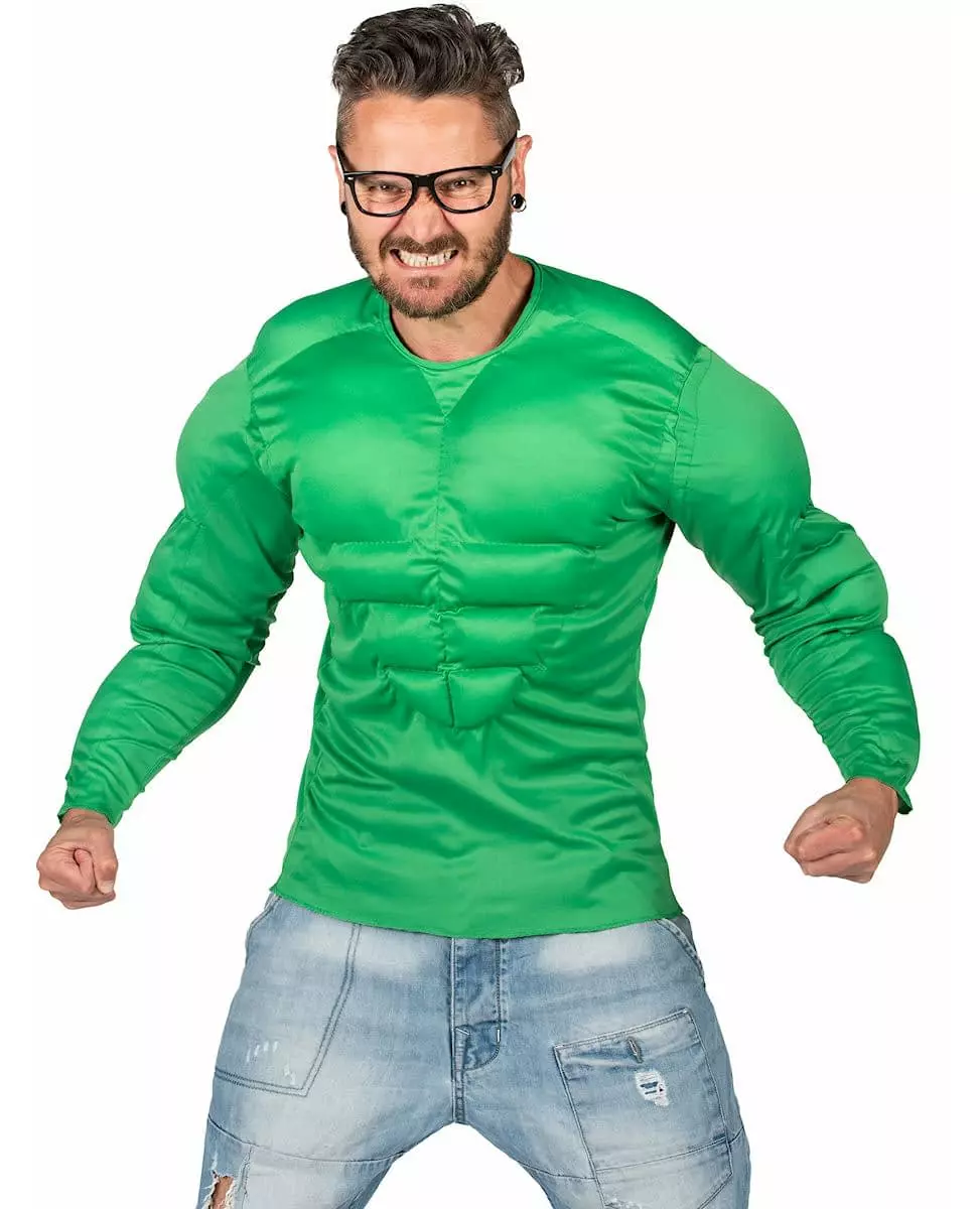 Klar for forvandlingen! Denne grønne muskeltoppen er for voksne (bukser, belte og sminke er ikke inkludert). Den er neongrønn med polstrede falske muskler foran, på overkroppen og på armene. Denne grønne toppen lukkes bak med borrelås. Denne muskeltoppen vil være perfekt for å forvandle deg til en muskelmann til karneval eller kostymefest. «Copyright Widmann SRL». «Copyright Widmann SRL. Inkludert tilbehør: Topp Materiale: 100 % polyester Pleie: Håndvask