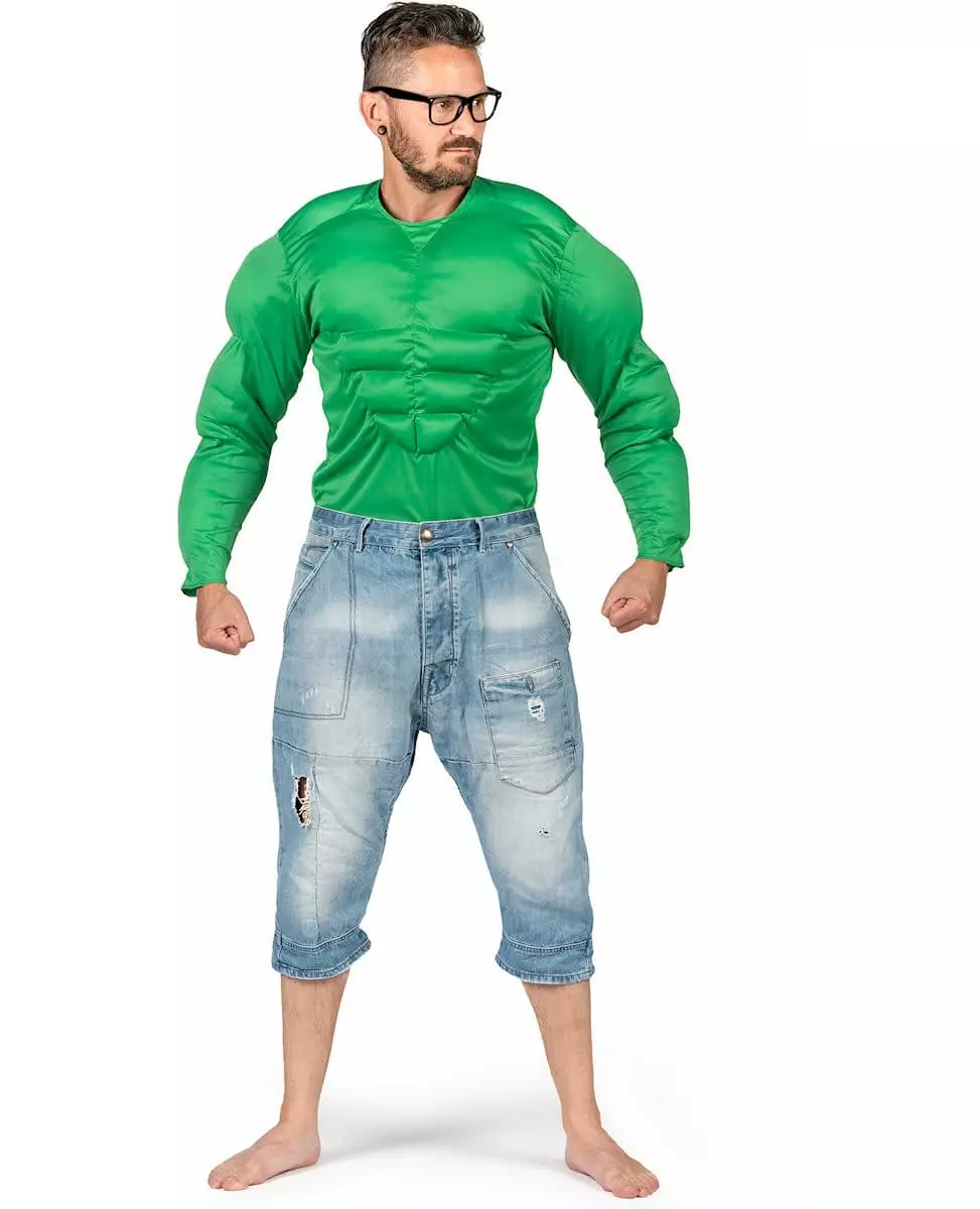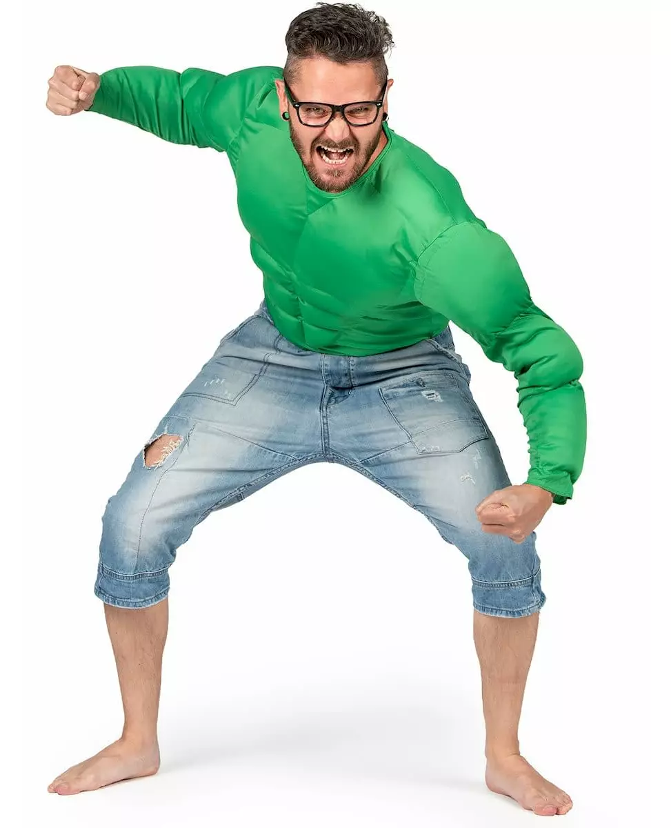 Klar for forvandlingen! Denne grønne muskeltoppen er for voksne (bukser, belte og sminke er ikke inkludert). Den er neongrønn med polstrede falske muskler foran, på overkroppen og på armene. Denne grønne toppen lukkes bak med borrelås. Denne muskeltoppen vil være perfekt for å forvandle deg til en muskelmann til karneval eller kostymefest. «Copyright Widmann SRL». «Copyright Widmann SRL. Inkludert tilbehør: Topp Materiale: 100 % polyester Pleie: Håndvask