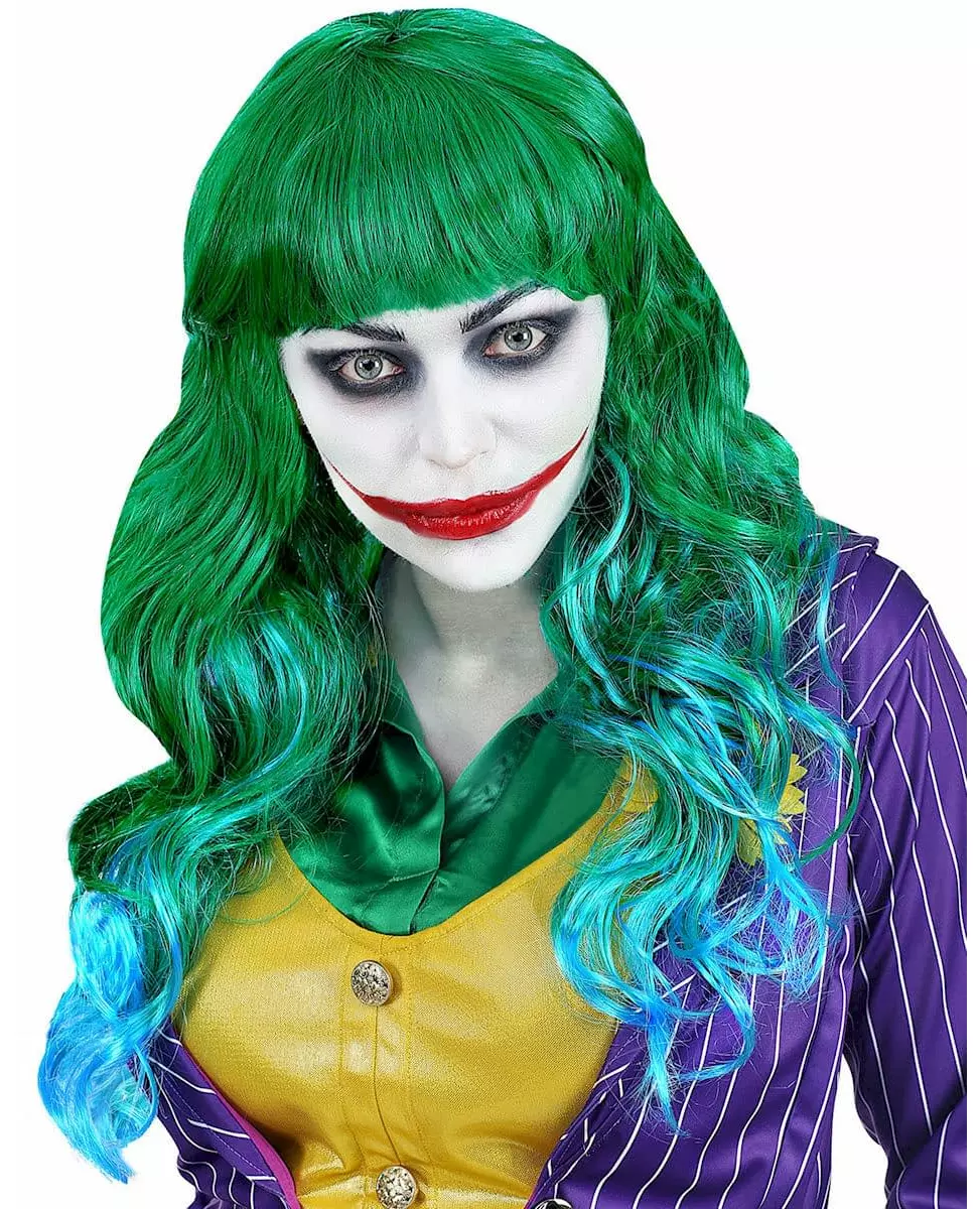 Våg å være gal med denne parykken. Den grønne og blå psykopatparykken er for kvinner. Den har grønt hår ved røttene og blått i tuppene. Denne parykken er lang med bølgete hår. Den vil være perfekt for å fullføre et gal joker-kostyme til et utkledningsarrangement. Inkludert tilbehør: Parykk.