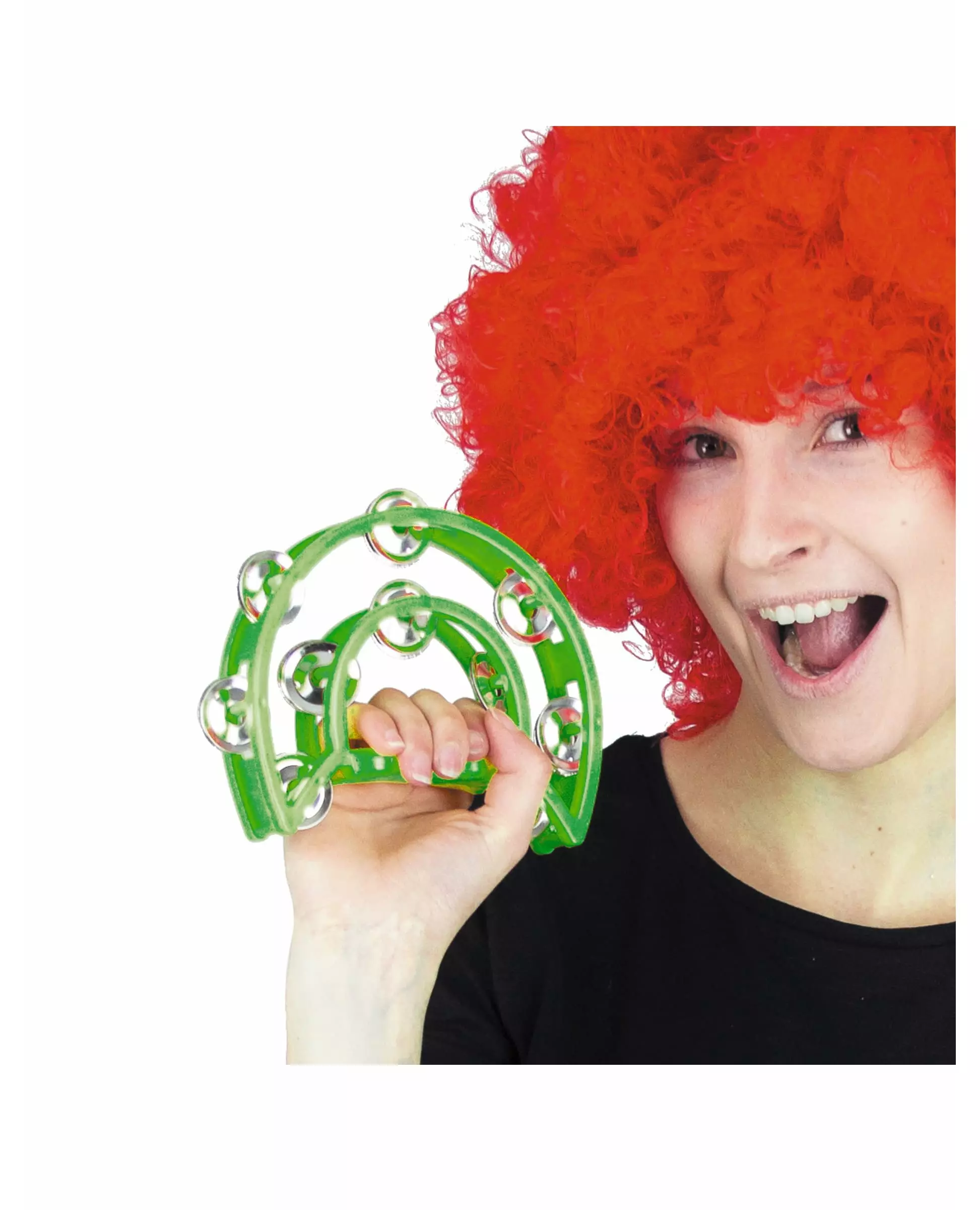 Legg til rytme i kveldene dine med denne fargerike tamburinen. Denne tamburinen er laget av grønn plast. Den er dekorert med cymbaler som lager lyd når du beveger deg. Denne tamburinen måler omtrent 40 cm. Den vil være perfekt for å fullføre et sigøyner- eller klovnekostyme til karneval. Inkludert tilbehør: Tamburin. Materiale: Plast.