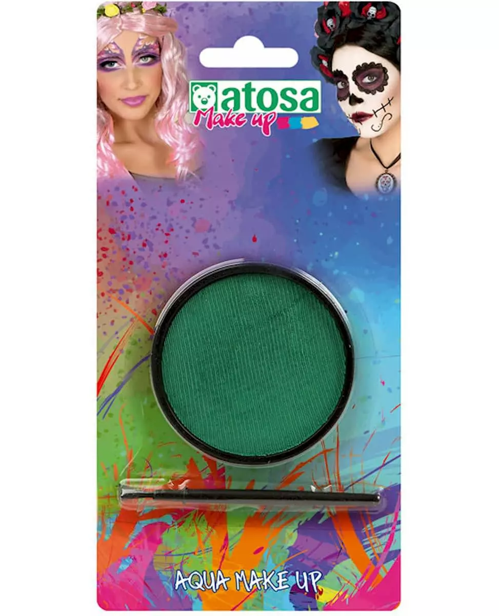 Ta på deg grønn sminke! Denne lille beholderen med vannbasert sminke har en kapasitet på 12 g. Sminken er grønn. Du kan bruke den til ansikt eller kropp. Den fjernes enkelt med såpe og vann. Den vil være ideell for karnevalssminke eller for å forvandle deg til en romvesen på en kostymefest!. Inkludert tilbehør: 1 beholder sminke