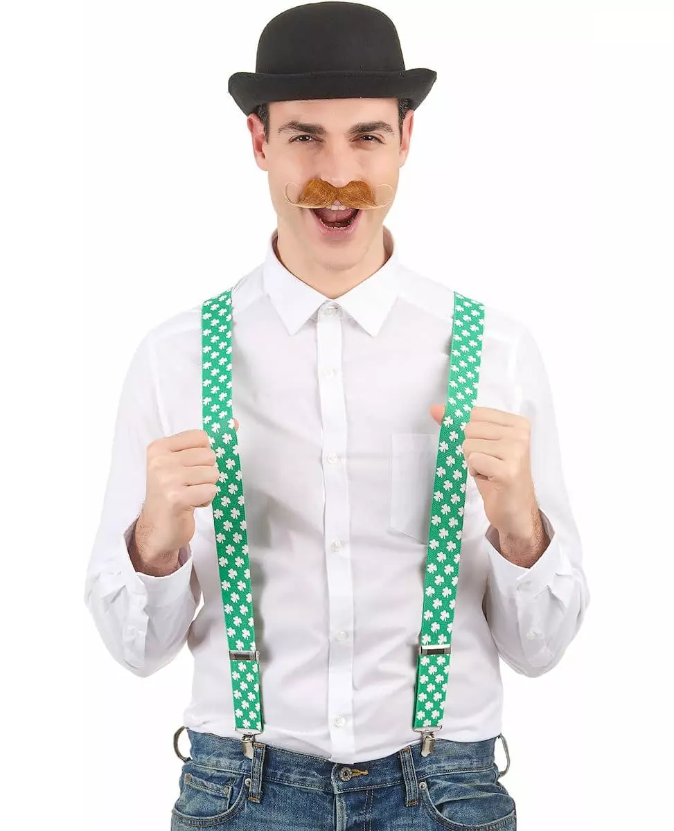 Grønne bukseseler med hvite kløver på St. Patricks dag