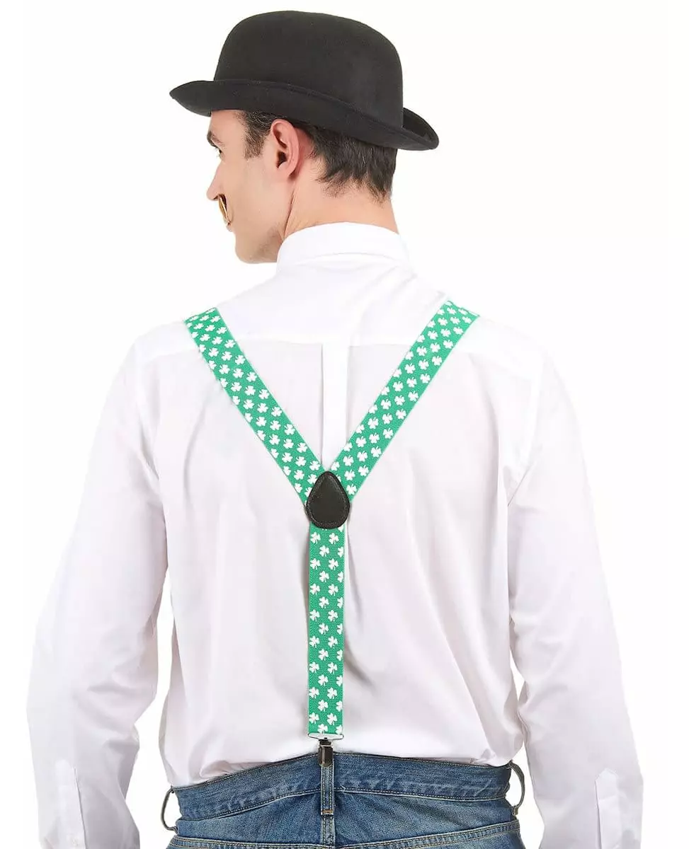 Legg til et snev av grønt til St. Patricks dag-antrekket ditt. Disse grønne selene er for voksne. De er trykt med hvitkløver. Disse selene er elastiske, justerbare og lukkes med metallkroker. Disse vil være perfekte for å fullføre antrekket ditt og gi det essensielle preget av grønt som du må bruke på St. Patricks dag. Inkludert tilbehør: Seler
