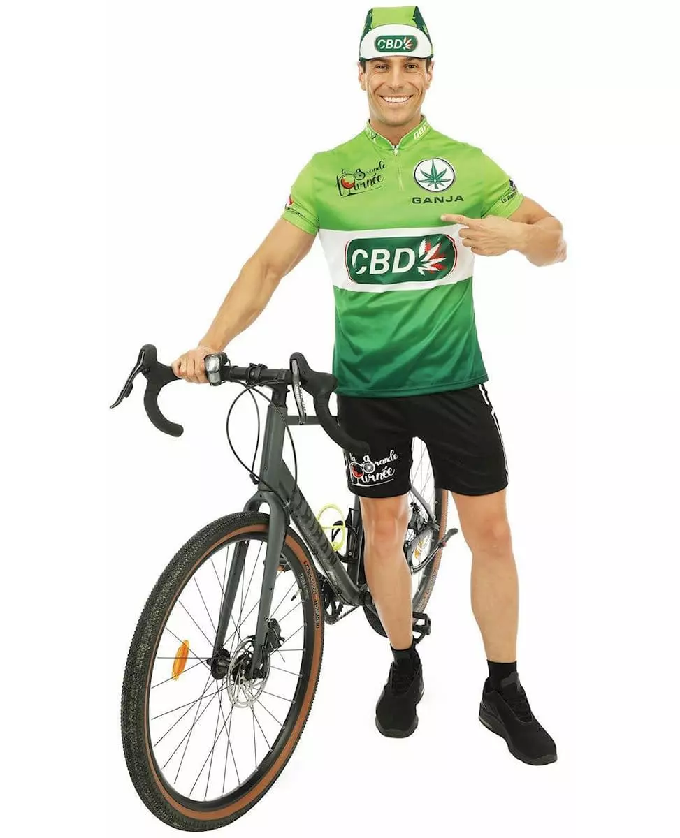 Full gass ... avslappet versjon! Dette syklistkostymet for menn inkluderer en grønn trøye, svarte shorts og en matchende caps. Toppen, tilgjengelig i nyanser av grønt, har parodilogoer inspirert av CBD-verdenen, for et utseende som er både morsomt og uvanlig. En flott måte å vise frem humoren din og slappe av! De svarte shortsene gir et snev av enkelhet som balanserer antrekket, mens capsen bruker de samme visuelle kodene for et perfekt matchende utseende. Dette kostymet vil være et perfekt valg for et utdrikningslag, et kostymefest eller et arrangement der selvironikk er viktig. Materiale: 2527. Inkludert tilbehør: 1 T-skjorte 1 shorts 1 caps