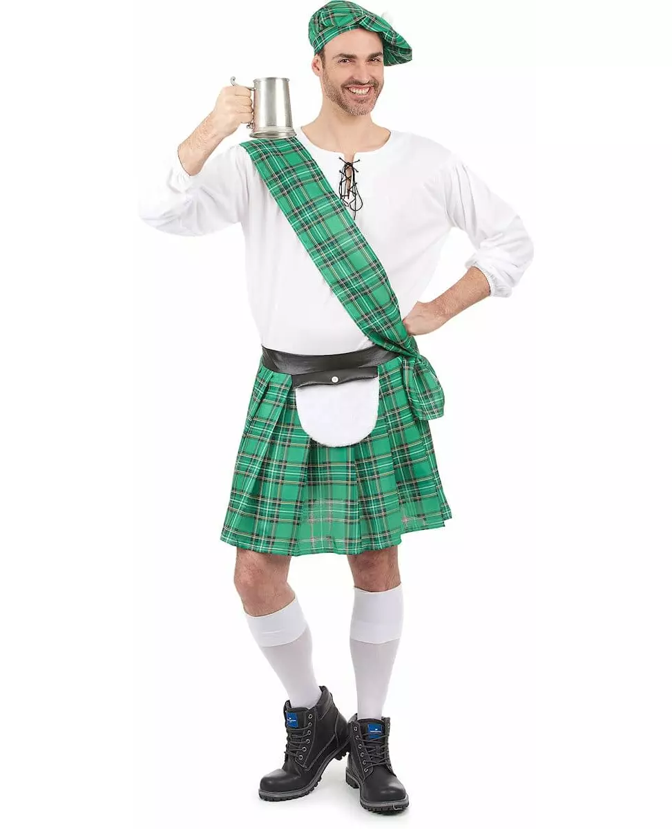 Grønt og hvitt skotsk kostyme for menn