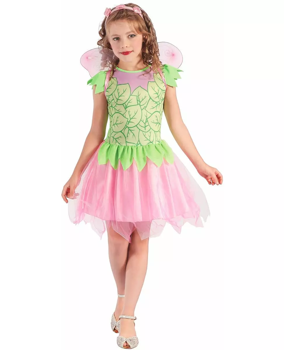 Grønt og rosa fe-kostyme til jenter