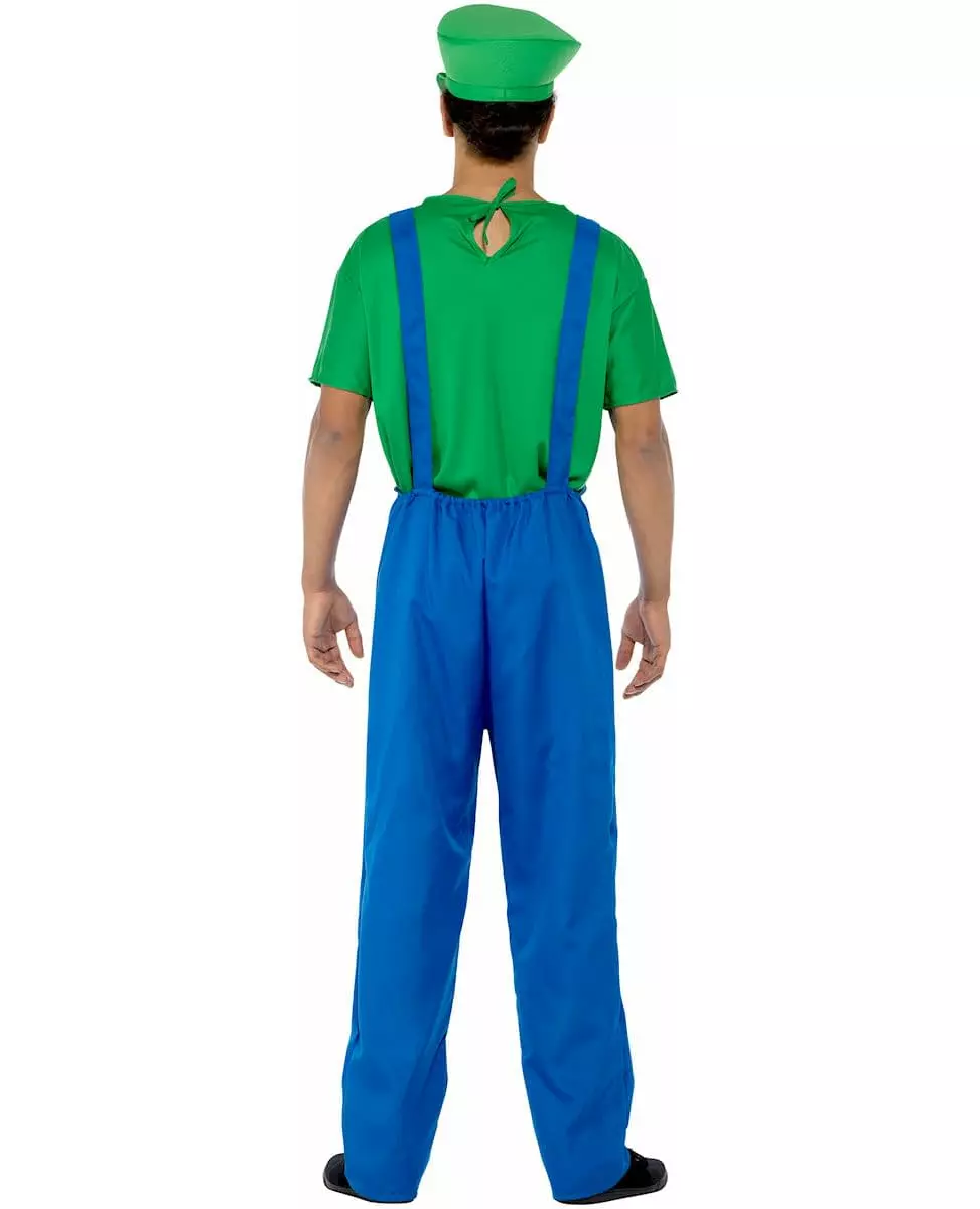 Spill som en videospillfigur! Dette grønne rørleggerkostymet for menn består av en kjeledress, en t-skjorte og en caps. Kjeledressen er blå med to seler. De er dekorert med gule knapper nederst på selene. Denne kjeledressen har elastisk linning og lukkes med borrelås på selene. Den kortermede t-skjorten er grønn. Den knytes bak med et slips. Den matchende capsen har samme farge. Dette rørleggerkostymet er perfekt for å late som om du er en videospillhelt. Til karnevalet. Inkludert tilbehør: Kjeledress, t-skjorte, caps. Materiale: 100 % polyester. Vedlikehold: Håndvask. Målinformasjon: For størrelse M, t-skjorte 70 cm lang og kjeledress 144 cm lang fra de gule knappene.