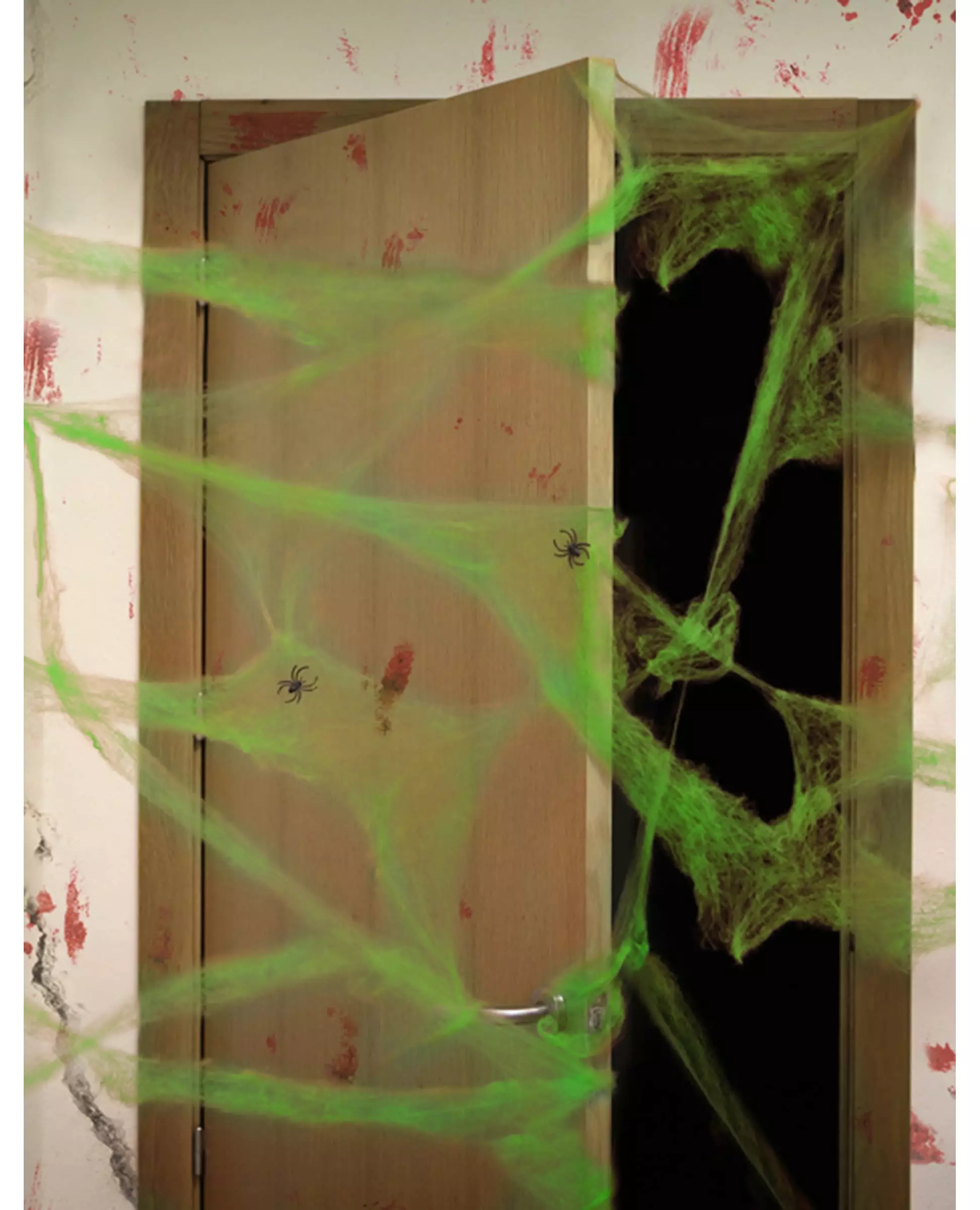 Et skummelt grønt nett ... Dette grønne spindelvevet kommer med edderkopper. Det veier 20 g og kan henges på vegger, dører eller tak. Her er et nett som lar deg dekorere rommet ditt for å feire Halloween!. Inkludert tilbehør: Spindelvev med edderkopper