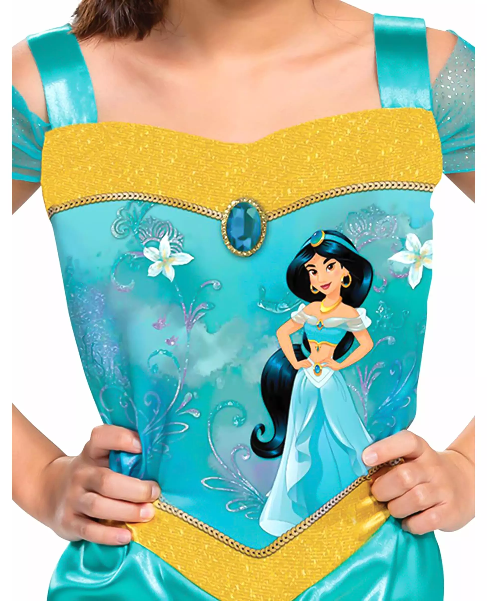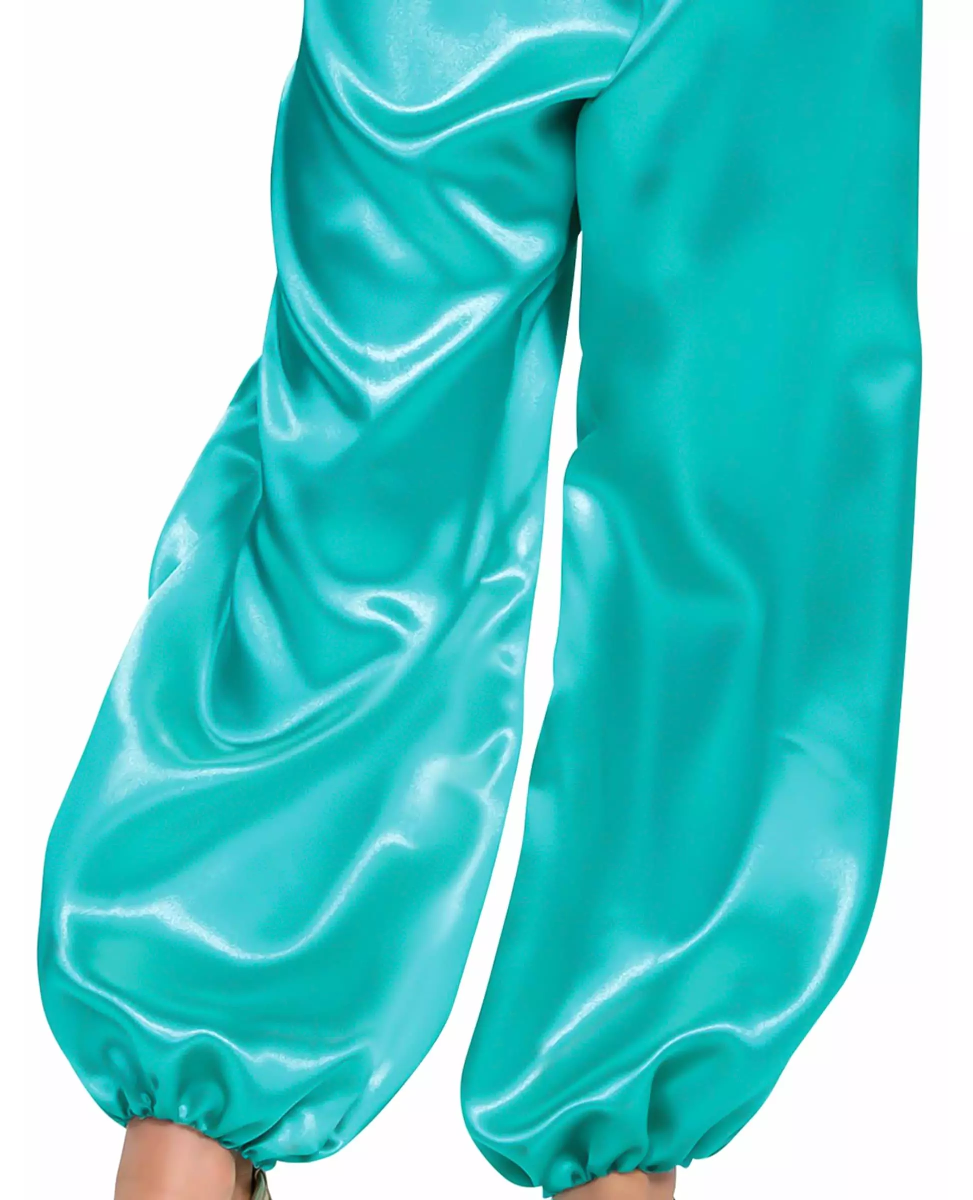 Finn din sjarmerende prins Dette Jasmin-kostymet er offisielt lisensiert av Disney. Det inkluderer en jumpsuit. Jumpsuiten har ingen ermer, men er erstattet av et lyst, gjennomsiktig blått slør. Den er laget av satengblått stoff overalt, med en gul del ved kragen og beltet. Den har motivet av den berømte prinsesse Jasmin. Fullfør ditt «Tusen og én natt»-prinsesseantrekk til barnets bursdag! Inkludert tilbehør: Jumpsuit Materiale: 100 % polyester Vedlikehold: Håndvask