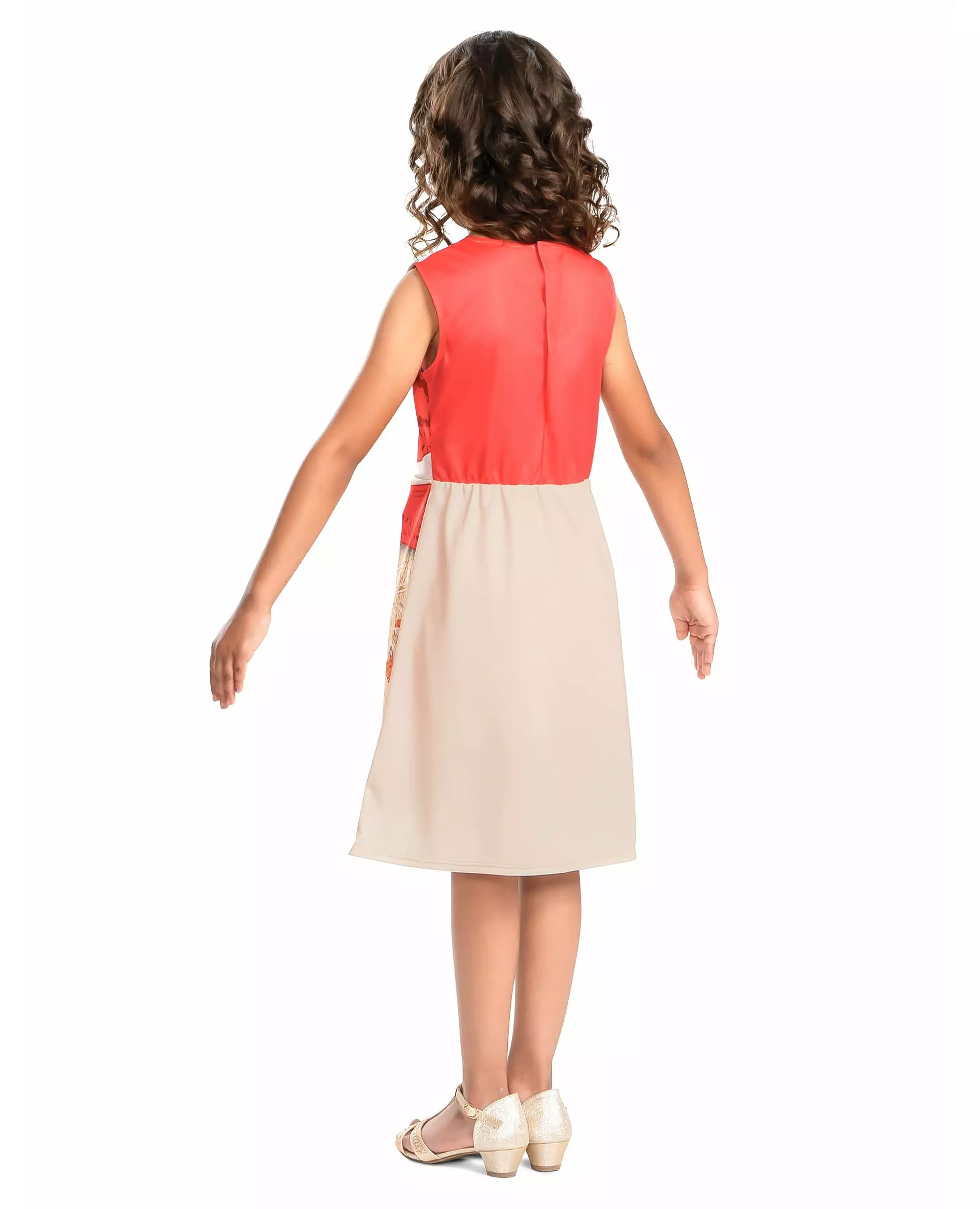 En ekte polynesier! Dette offisielt lisensierte kostymet for jenter representerer Vaiana. Det inkluderer kun en kjole. Både toppen av kjolen og beltet er i røde nyanser, ledsaget av typiske polynesiske motiver, antrekket som ble brukt av den berømte Vaiana. På den øvre delen finner du et halskjedetrykk med medaljong. Skjørtdelen av kjolen er beige med et trykk av motiver, også polynesiske, blomster og netting. Dette Vaiana-kostymet vil være perfekt for å fullføre barnets antrekk. Til en bursdag eller til karneval! Inkludert tilbehør: 1 kjole Materiale: 100 % polyester Pleie: Håndvask