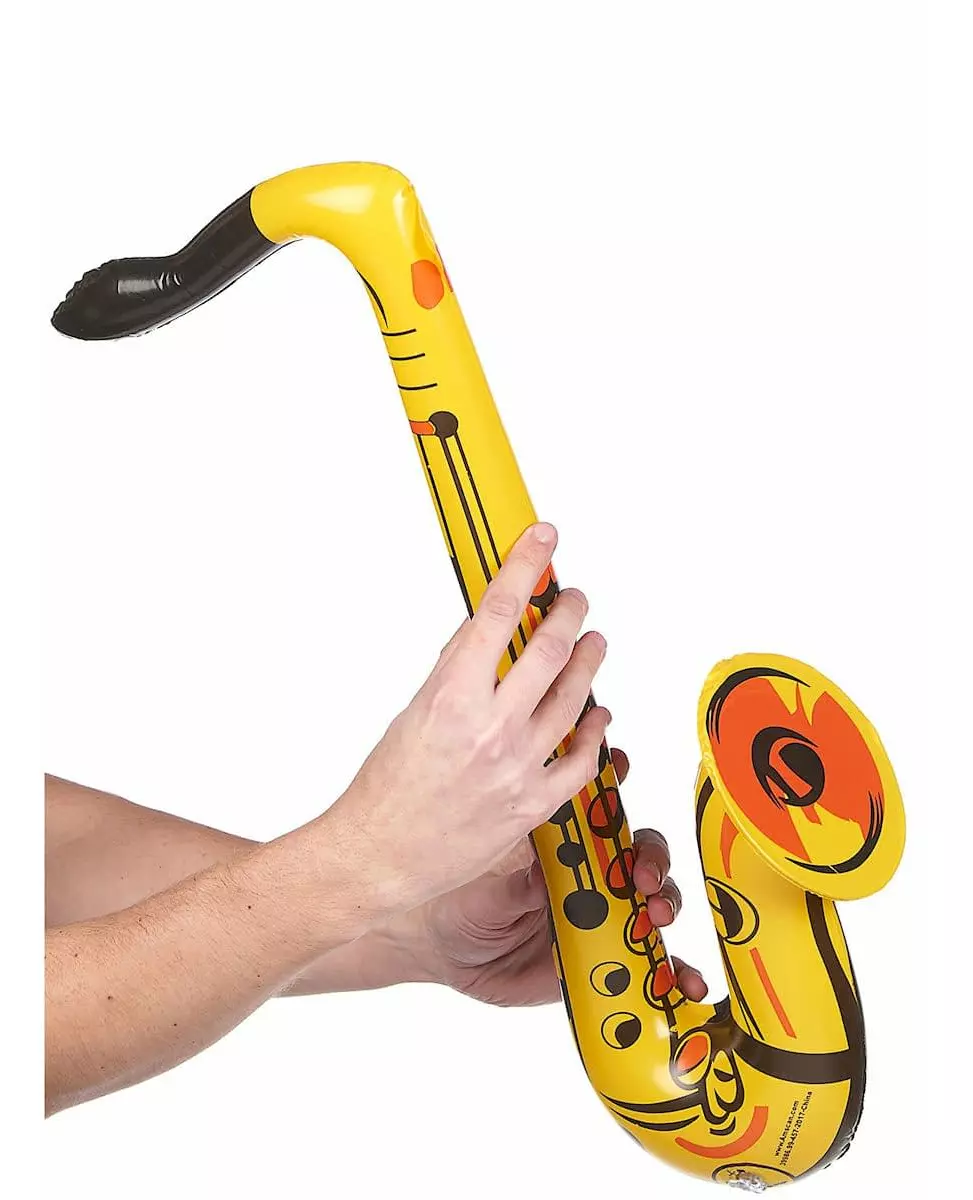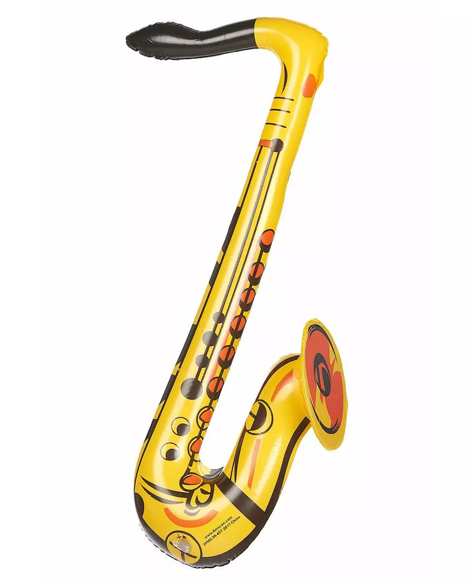 Kom igjen, blås! 55 cm oppblåsbar saksofon, veldig lett. Munnblåsing anbefales – pumpeblåsing anbefales ikke. Ideelt tilbehør for å fullføre et musikerkostyme og live opp kvelden med musikk. Inkludert tilbehør: Saksofon