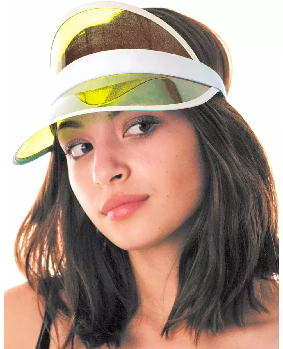 Ta pokerfjeset i bruk Dette pokerspillervisiret er for voksne. Begge visirene er laget av gjennomsiktig gul plast. Kantene på dette visiret er hvite. Dette visiret vil være perfekt for en pokerkveld. Inkludert tilbehør: Visir