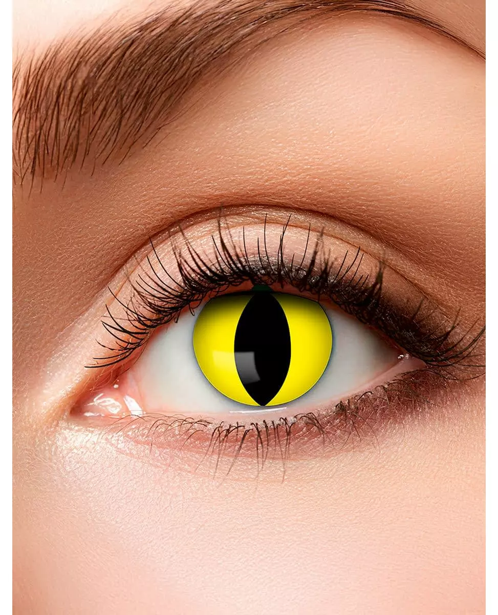 Pynt kostymet ditt ned til minste detalj. Disse fancy kontaktlinsene for voksne er gule i fargen. De imiterer den atypiske formen til pupillen til reptiløyne. De måler 14,5 mm i diameter. De har en levetid på 1 uke etter åpning. Disse vil være perfekte for å forestille et reptil eller en katt som er mer virkelighetstro enn livet til karnevalet. Dette produktet er CE0120 - ISO9001 - ISO13485 og CE-sertifisert. Materiale: 58 % polyhema, 42 % vann.