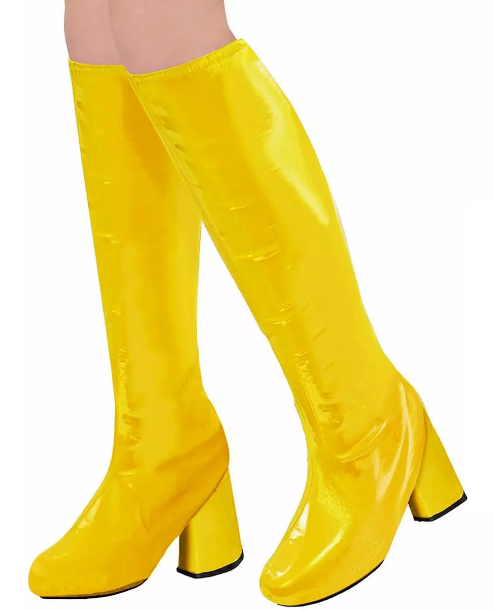 Velg disse gule overstøvlene for å fullføre disco-antrekket ditt. Disse retro overstøvlene for voksne er gule. Litt skinnende, de glir over skoene dine. Det er en åpning for å føre hælen på skoene gjennom. Disse overstøvlene vil være perfekte for å legge farge til disco-kostymet ditt til karneval. Én størrelse: ca. 26 cm og leggmål 33 cm. Inkludert tilbehør: 2 overstøvler Materiale: 100 % polyester Pleie: Håndvask