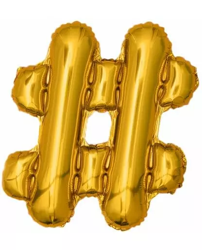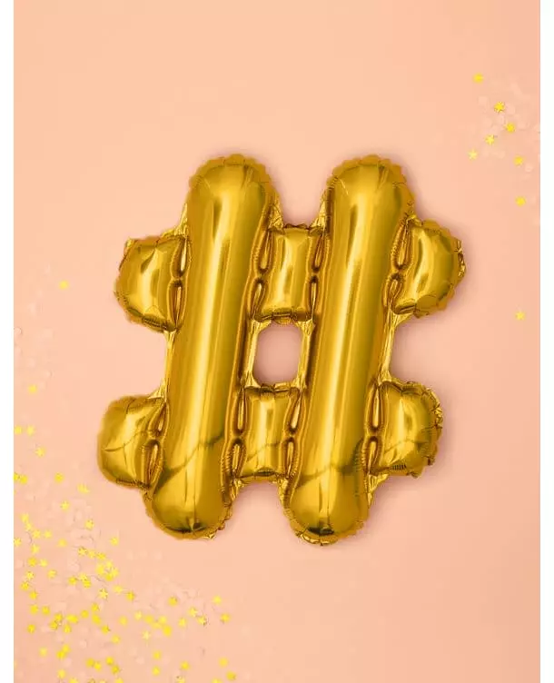 Gull folieballong med #-symbol, 33 cm