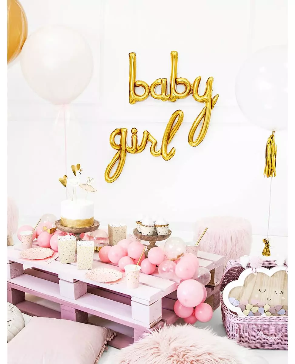 Lag en fin dekorasjon til en liten jente! Denne folieballongen er gullfarget. Den representerer ordet «jente» og måler omtrent 77 x 70 cm. Du kan blåse den opp med luft og henge den over for eksempel en godteribar. Denne ballongen vil være ideell for å fullføre dekorasjonen til babyshoweren din. Inkludert tilbehør: 1 ballong Materiale: Aluminium