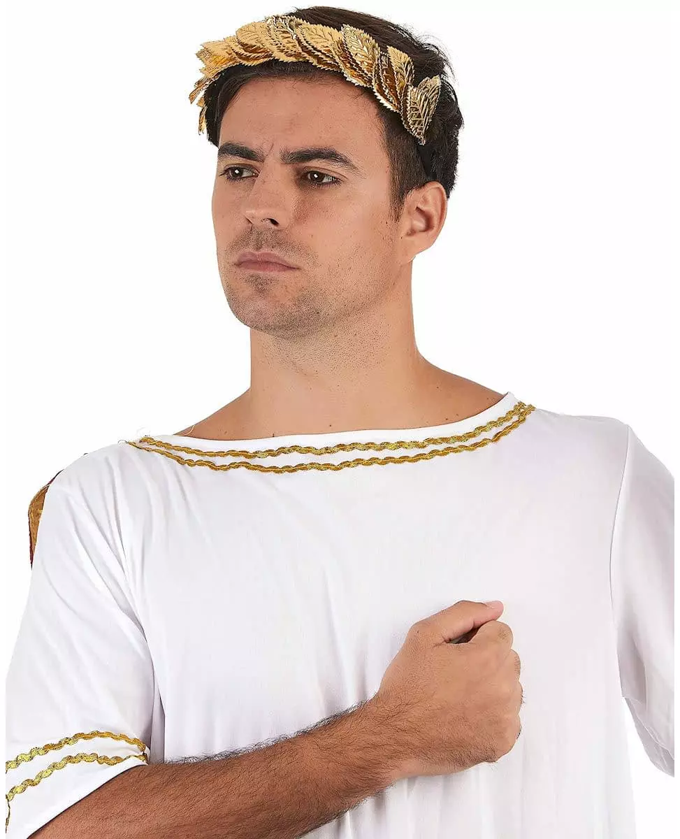 Essensielt Dette laurbærkranspannebåndet for voksne består av et svart pannebånd hvor tykke gyldne blader er festet, litt overlappende. For en upåklagelig stil, vil det plasseres på pannen din for å gi denne historiske effekten. På grunn av pannebåndets elastisitet vil dette tilbehøret tilpasse seg alle hodetyper. Essensielt og tidløst, for å fullføre ditt romerske keiser- eller keiserinnekostyme under en kostymefest. Inkludert tilbehør: Pannebånd Materiale: Plast og polyester