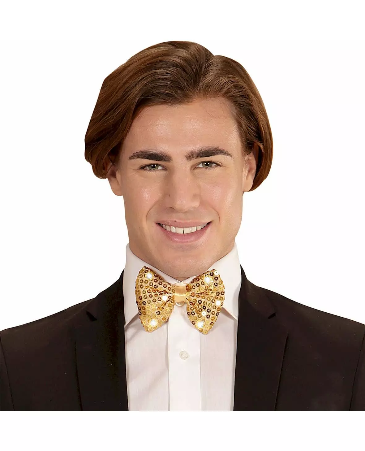 Overrask gjestene dine med dette elegante tilbehøret! Denne blinkende LED-sløyfen for voksne er gull (kun sløyfen er inkludert). Den er dekket av paljetter for en garantert glitrende effekt! Den har 4 blinkende LED-lys. Trykk på "PRØV MEG"-knappen for å aktivere lyseffekten! Sløyfen festes rundt halsen med en klipslukking. Fullfør kostymet ditt med denne sløyfen for en elegant og sjokkerende kveld! «Copyright Widmann SRL» Inkludert tilbehør: 1 sløyfe, Materiale: 100 % polyester,