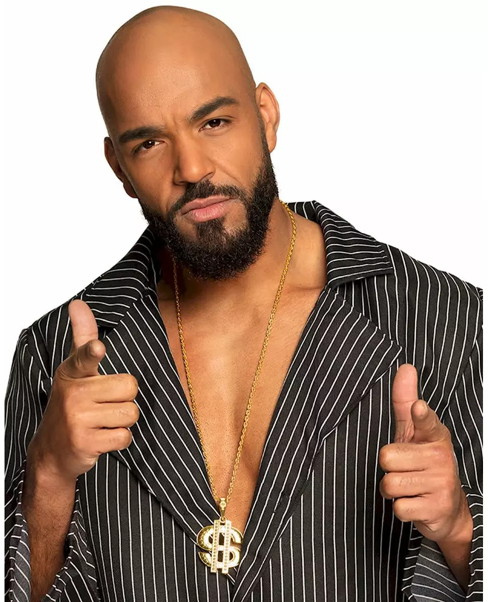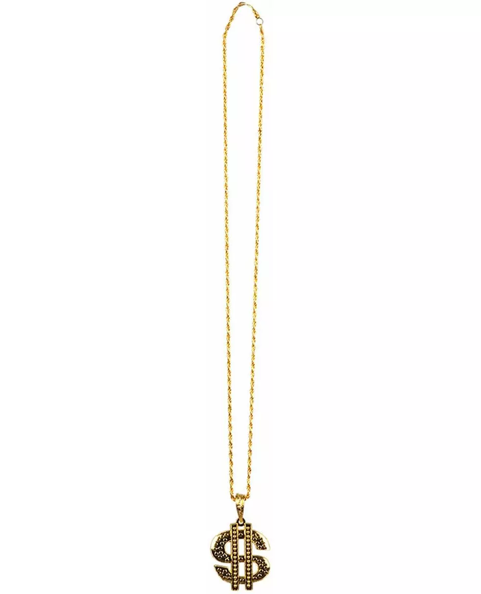 Det ultimate bling-bling-tilbehøret. Dette halskjedet for voksne består av en lang, lett gullkjede, utsmykket med et stort dollartegnanheng. Med sin iøynefallende stil legemliggjør det bling-, rap- eller gangsta-verdenen perfekt. Ideelt for å fullføre et rapper-, rikt eksentrisk eller ekstravagant karakterkostyme, vil dette halskjedet gi et prangende og selvsikkert preg til ethvert antrekk på et karneval, en kostymefest eller en spesiell begivenhet. 80-/90-tallstema. Inkludert tilbehør: 1 halskjede.