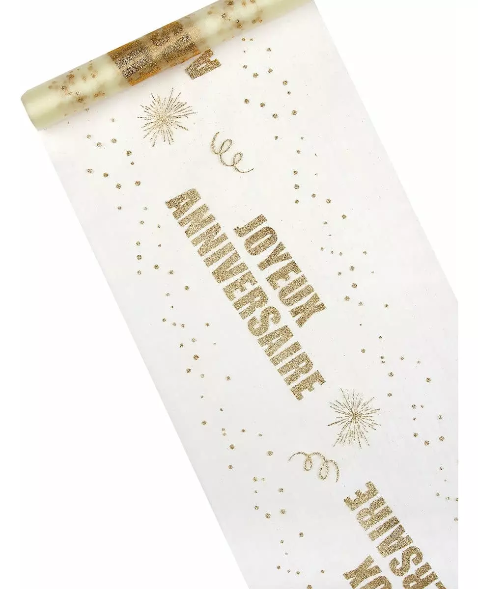 Gullfarget organza-bordløper i gratulerer med dagen, 29 cm x 5 m