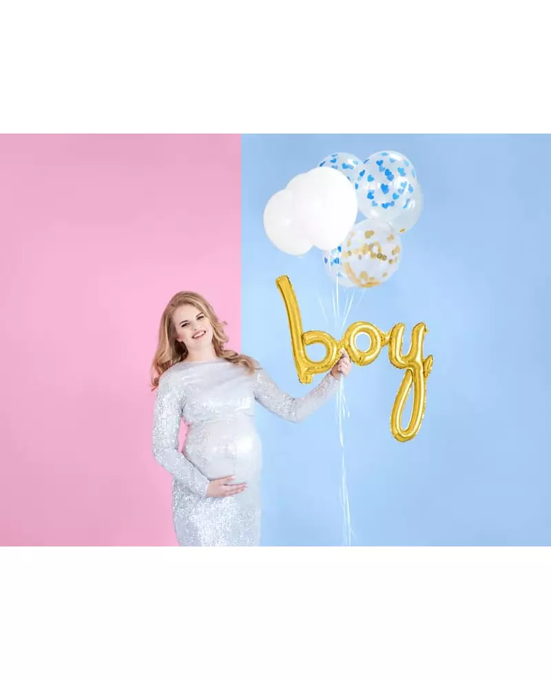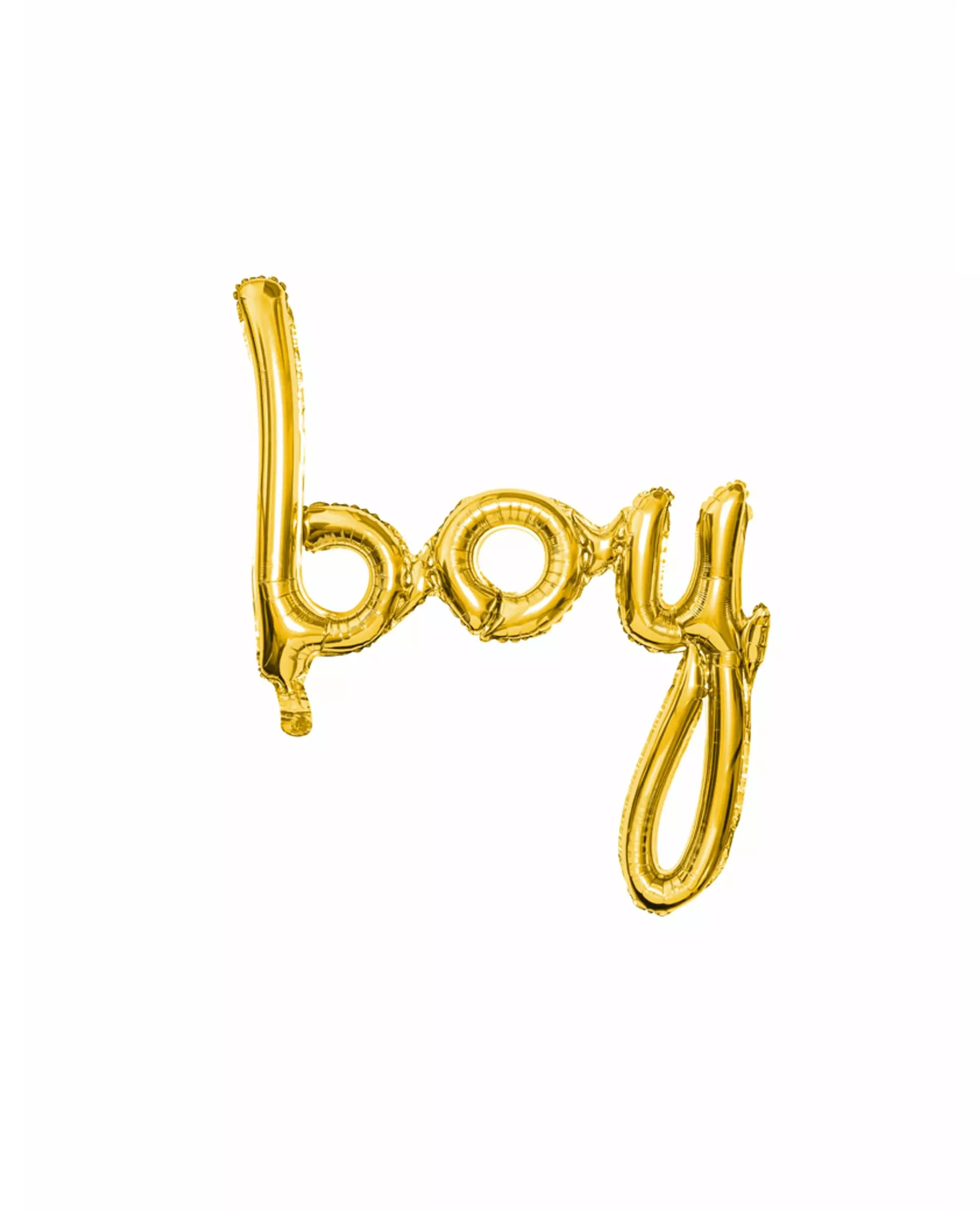 En dekorasjon til den lille gutten din! Denne folieballongen representerer ordet «gutt». Den er gyllen i fargen og måler omtrent 63,5 x 74 cm. Du kan blåse den opp med luft og henge den under buffeten eller sjokoladebaren din, for eksempel. Denne gutteballongen vil være perfekt for å fullføre den elegante dekorasjonen til en babyshower. Inkludert tilbehør: 1 ballong Materiale: Aluminium