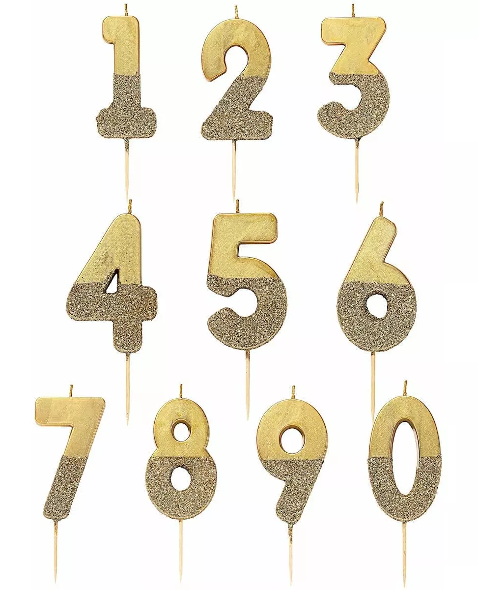Ditt elegante talllys! Dette lyset representerer tallet du velger (fra 0 til 9 for å velge fra rullegardinmenyen). Det måler nesten 14 cm høyt, den øvre delen av lyset er gullfarget og den nedre delen er også gull, men dekket med gullglitter. En trepinne plassert under lyset lar deg enkelt feste det på kaken din! Dette talllyset vil være perfekt for en elegant bursdag! Inkludert tilbehør: 1 lys Materiale: Voks og tre