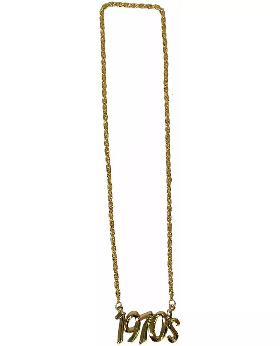 Ta en tur tilbake til 1970! Dette gullkjedet er for voksne. Det er laget av metall med en lenkekjede og et gullfarget "1970-talls"-anheng! Dette kjedet vil være perfekt for å fullføre et 70-talls kostyme på en retrofest! Inkludert tilbehør: Halskjede Materiale: Metall