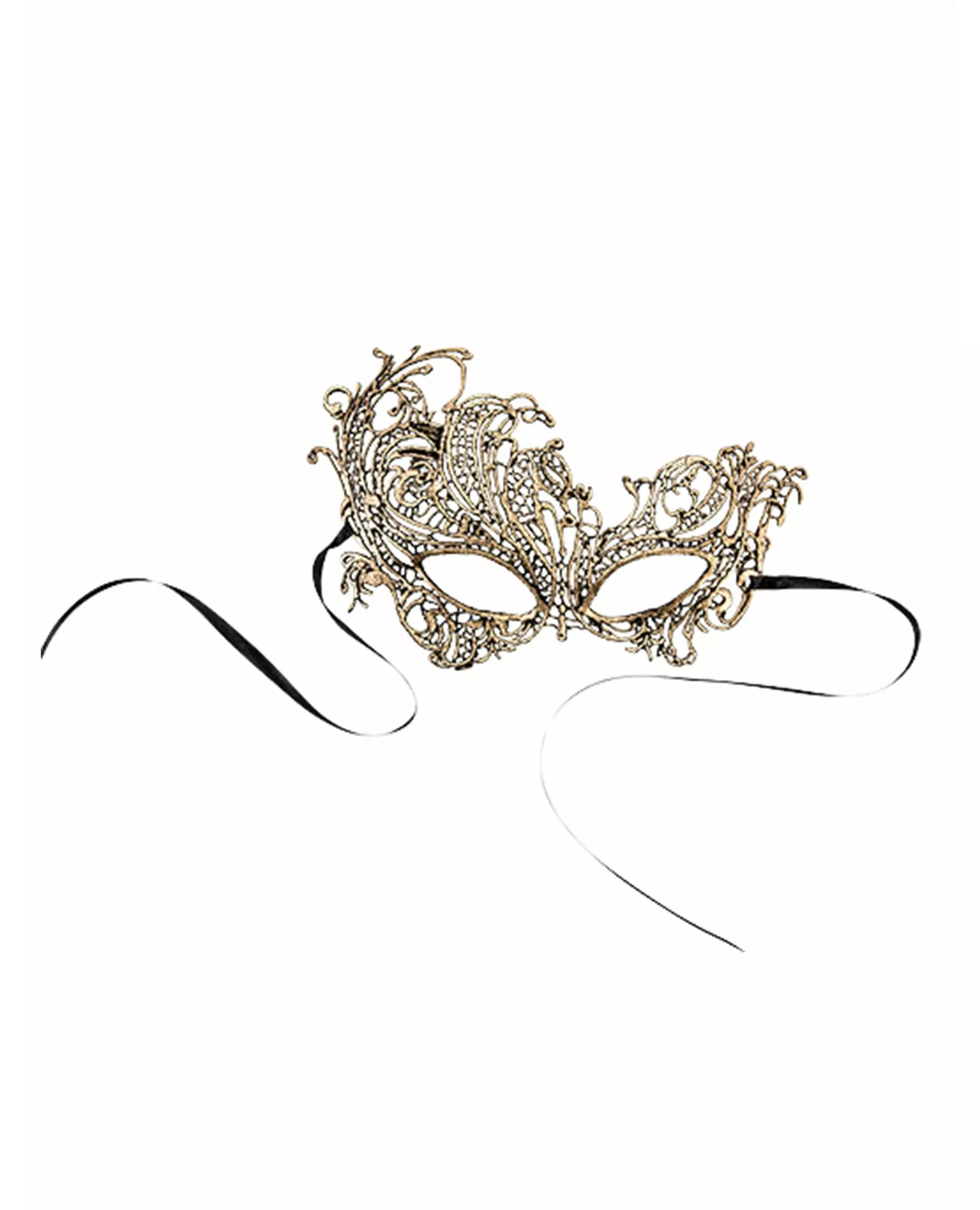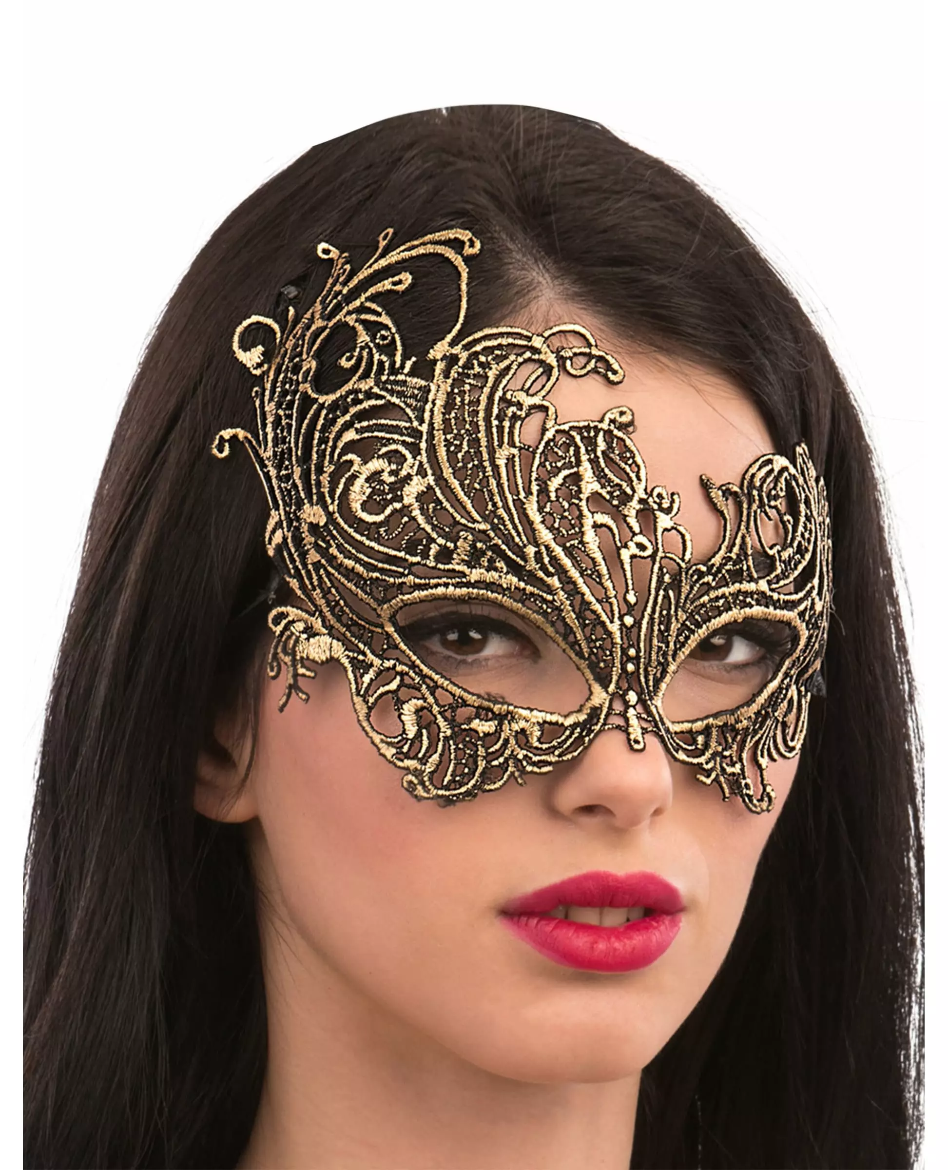 Forbedre antrekket ditt med denne gylne masken. Denne voksenmasken er laget av stoff med gyllen makramé-effekt. Den vil gi et elegant og elegant preg til karnevalkostymet ditt. Inkludert tilbehør: Maske. Materiale: 100 % polyester.