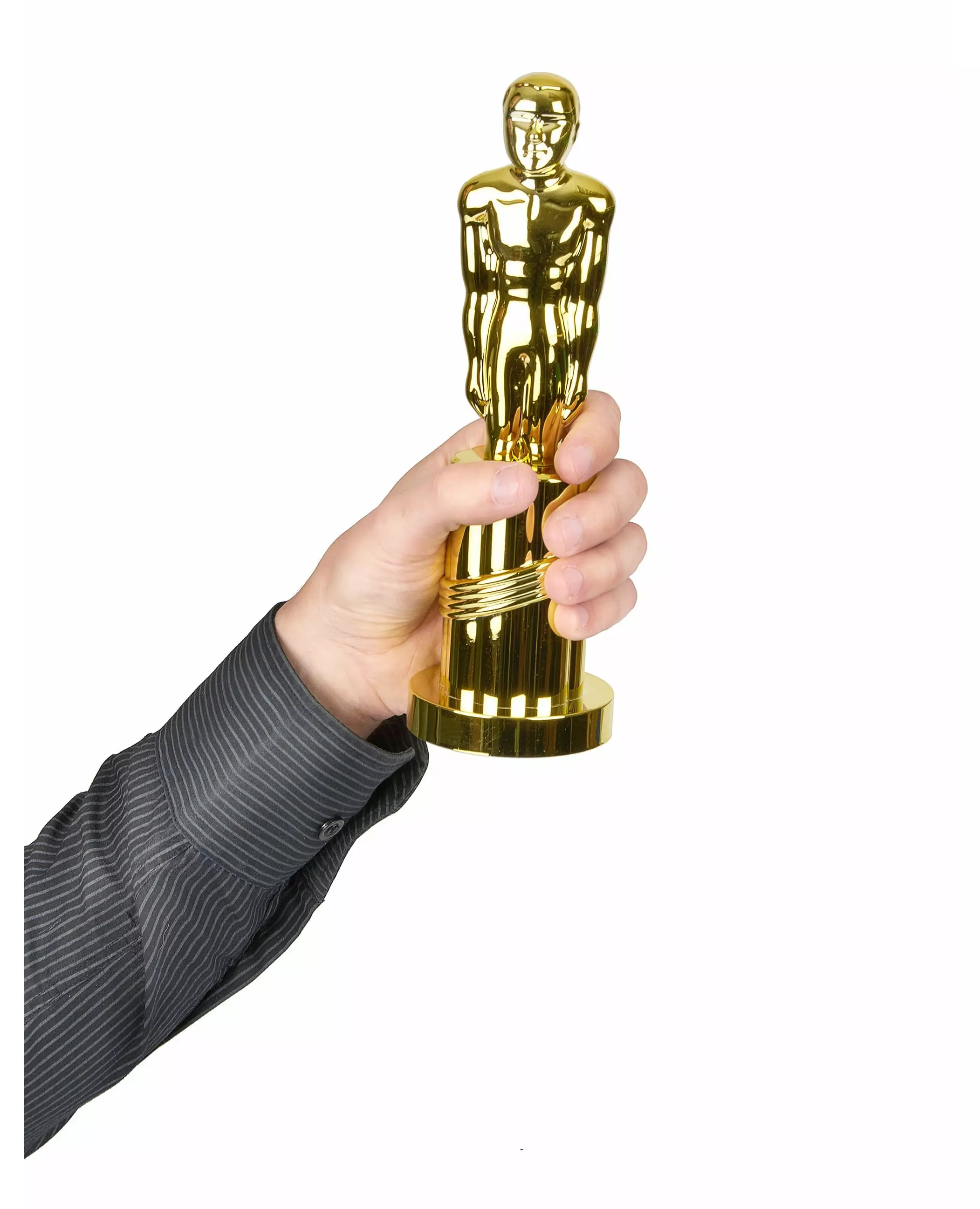 24 cm høy! Denne gullpris-plaststatuen imiterer perfekt et trofé, den måler 24 cm i høyden. Det er det ideelle tilbehøret til alle dine kino-tema-fester. Materiale Plast Plasttilbehør inkludert - Statue