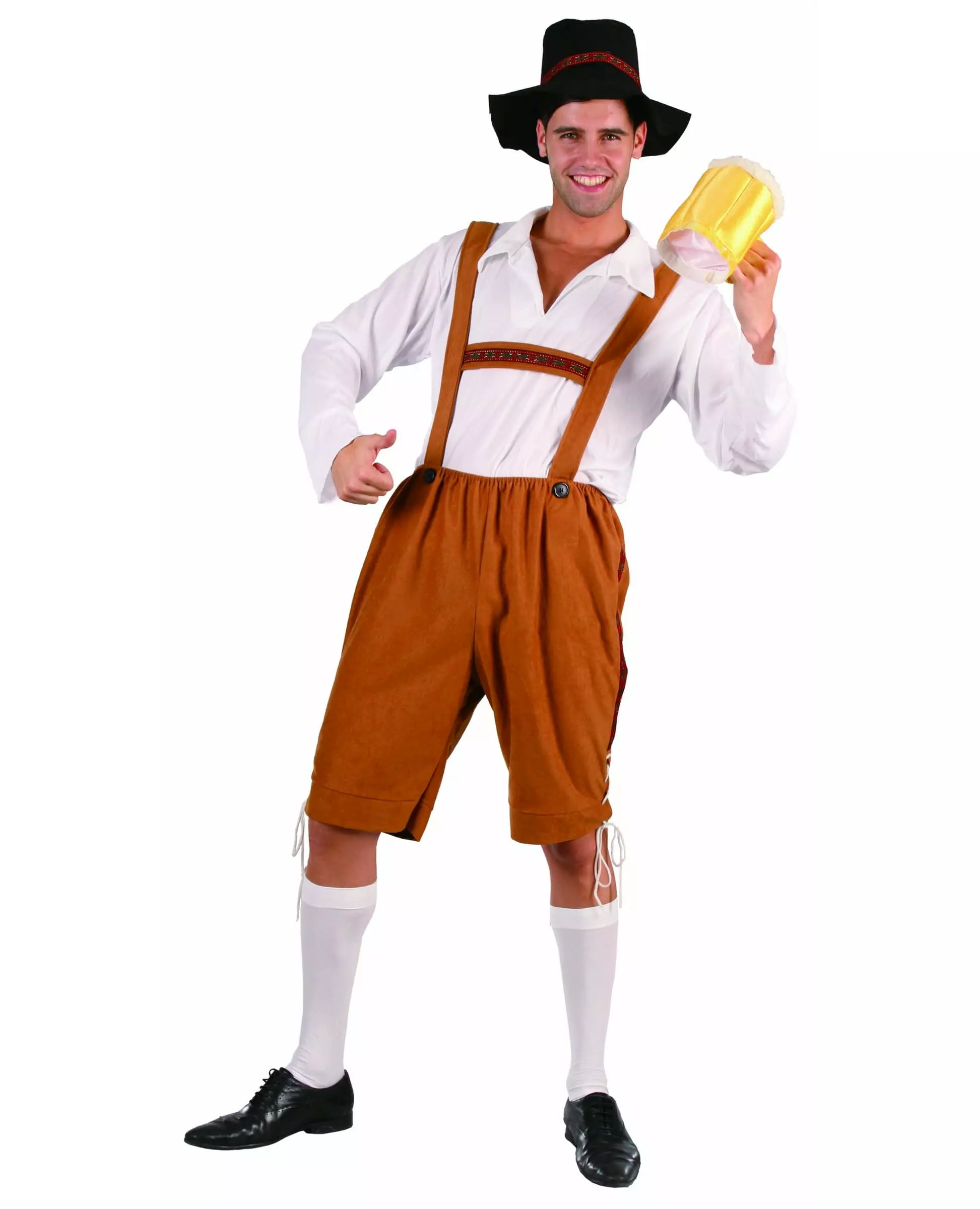 Hatt inkludert! Dette bayerske kostymet for menn består av en topp, bukser og en hatt. Den hvite toppen har en imitert skjortekrage. Buksene er laget av oransjebrun fløyel. De har borrelåsstropper og broderi på endene. En svart filthatt fullfører også dette kostymet. Dette kostymet vil være ideelt for temafester med vennene dine. Tilbehør inkludert: Topp, bukser, hatt Materiale: 100 % polyester Vedlikehold: Håndvask