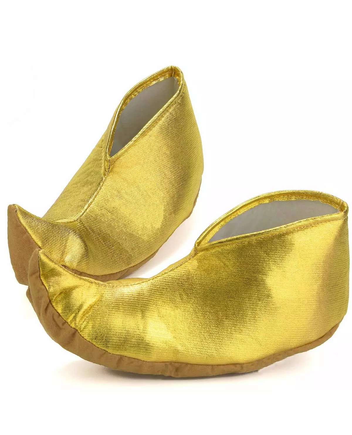 Kongelige tøfler! Disse sultanskoene er laget av halvstivt skum og er forsterket ved fotbuen. De er små i størrelsen, så vi anbefaler at du ikke bruker dem over dine egne sko. De vil være ideelle for å fullføre sultan- eller kalifkostymet ditt på en kostymefest, bursdag eller karneval. Inkludert tilbehør: Sko Materiale: 100 % polyester