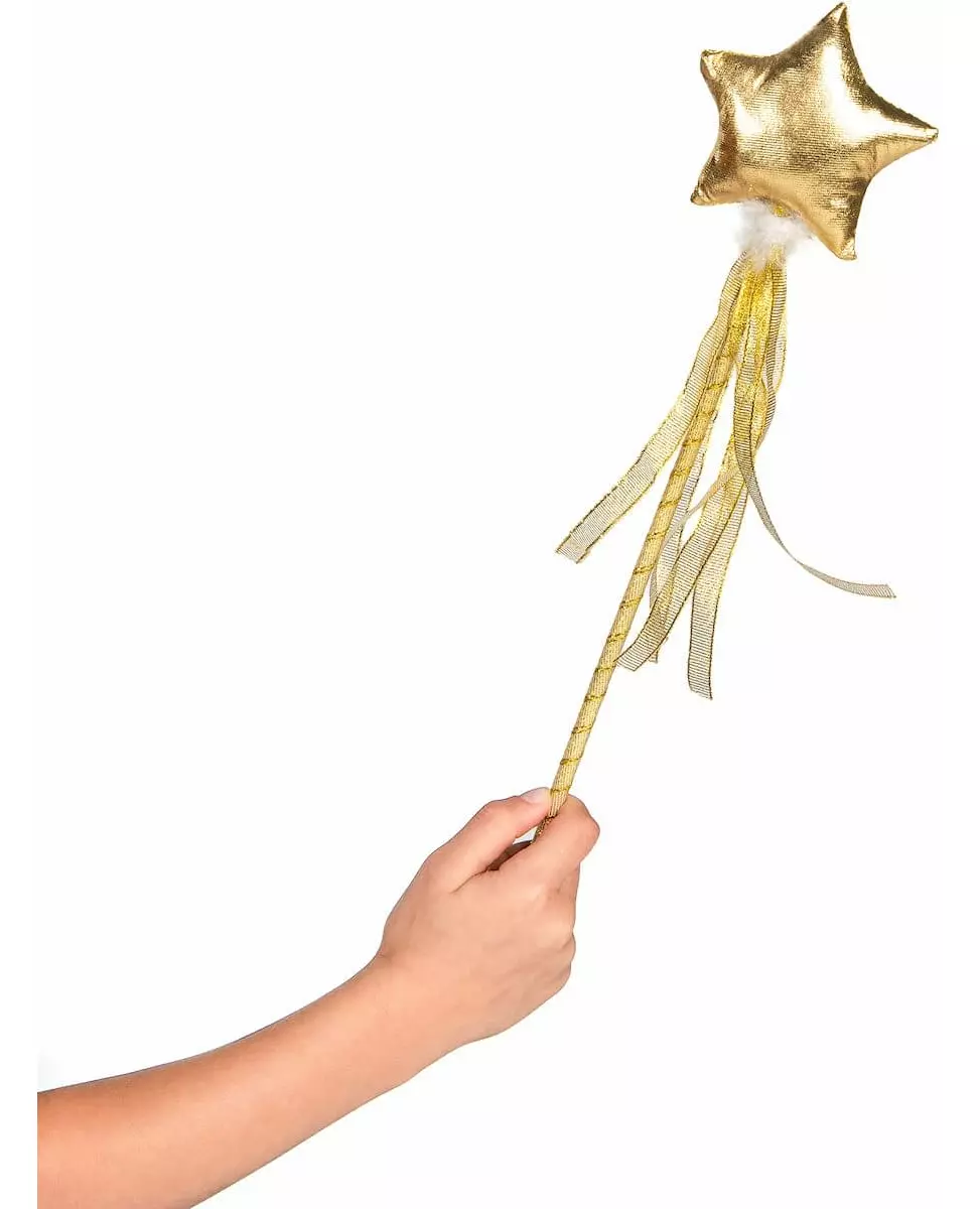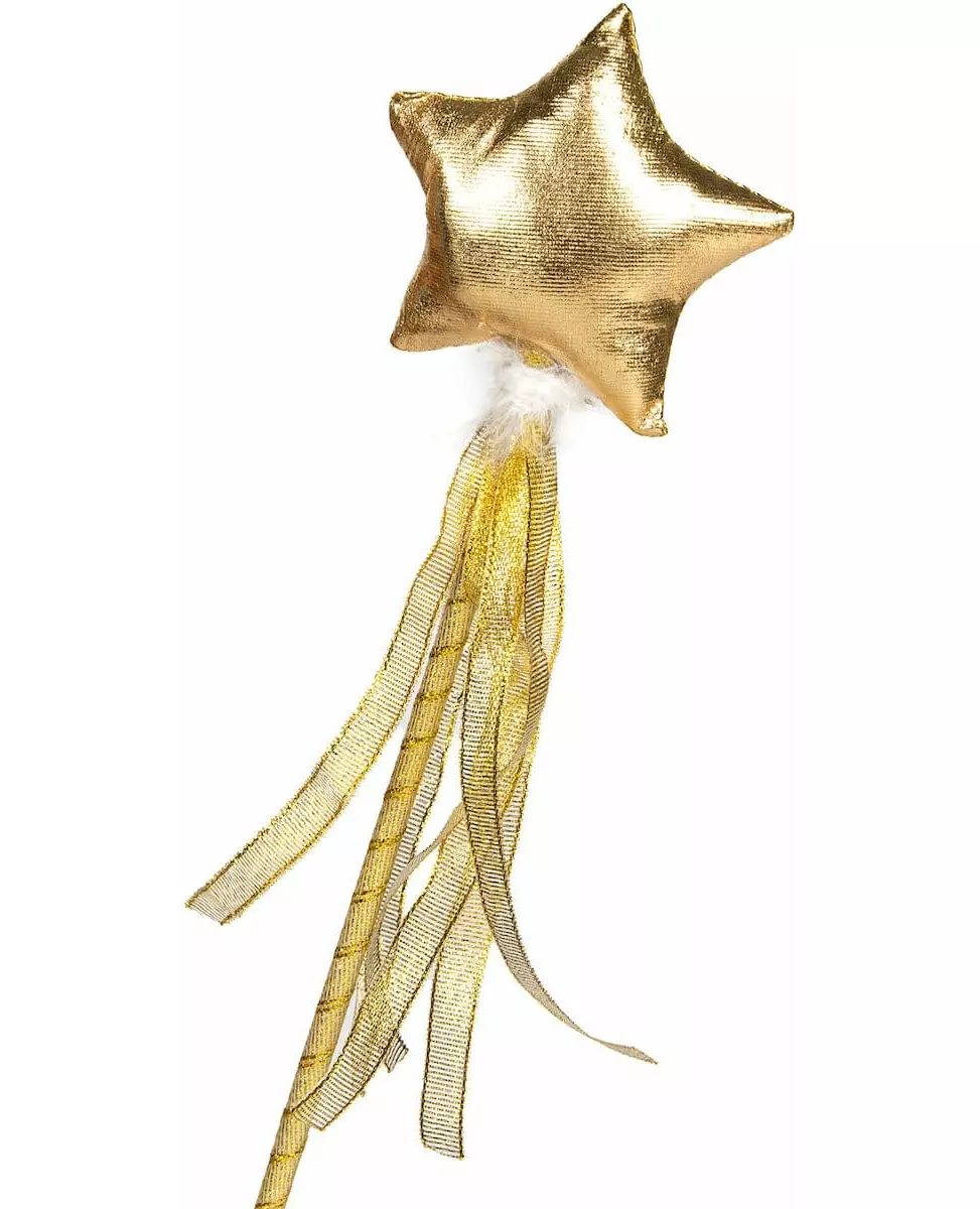 Perfekt for å leke prinsesse eller fe. Denne gyldne fe-staven er for jenter. Denne staven har et gyllent håndtak toppet med et pent metallisk gullstoffhjerte. Vakre gyldne bånd og hvite fjær dekorerer bunnen av dette hjertet. Et ideelt tilbehør til alle prinsesse- eller fe-kostymer til en utkledningsbursdag eller karneval. Inkludert tilbehør: Tryllestav