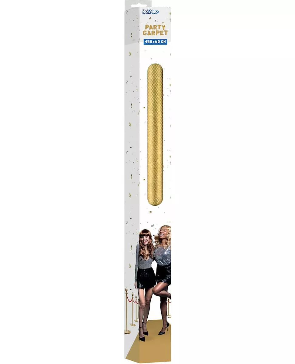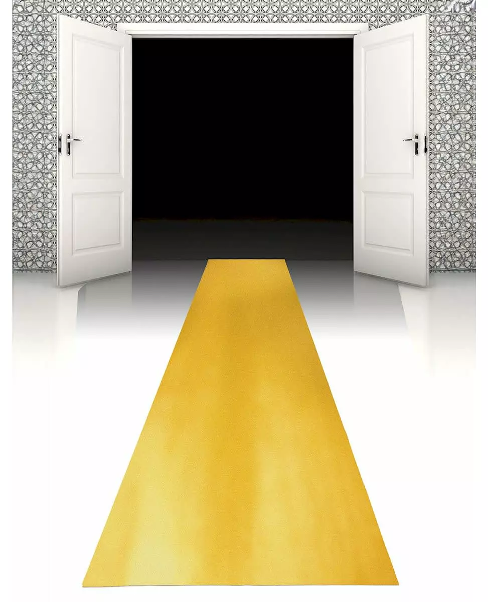 En elegant entré garantert! Dette gullfargede teppet måler omtrent 450 x 60 cm. Det er kun til engangsbruk. Dette tynne teppet er enkelt å sette opp. Lag en verdig entré for å ønske stjernene dine velkommen til filmkvelden eller Hollywood!. Inkludert tilbehør: 1 teppe