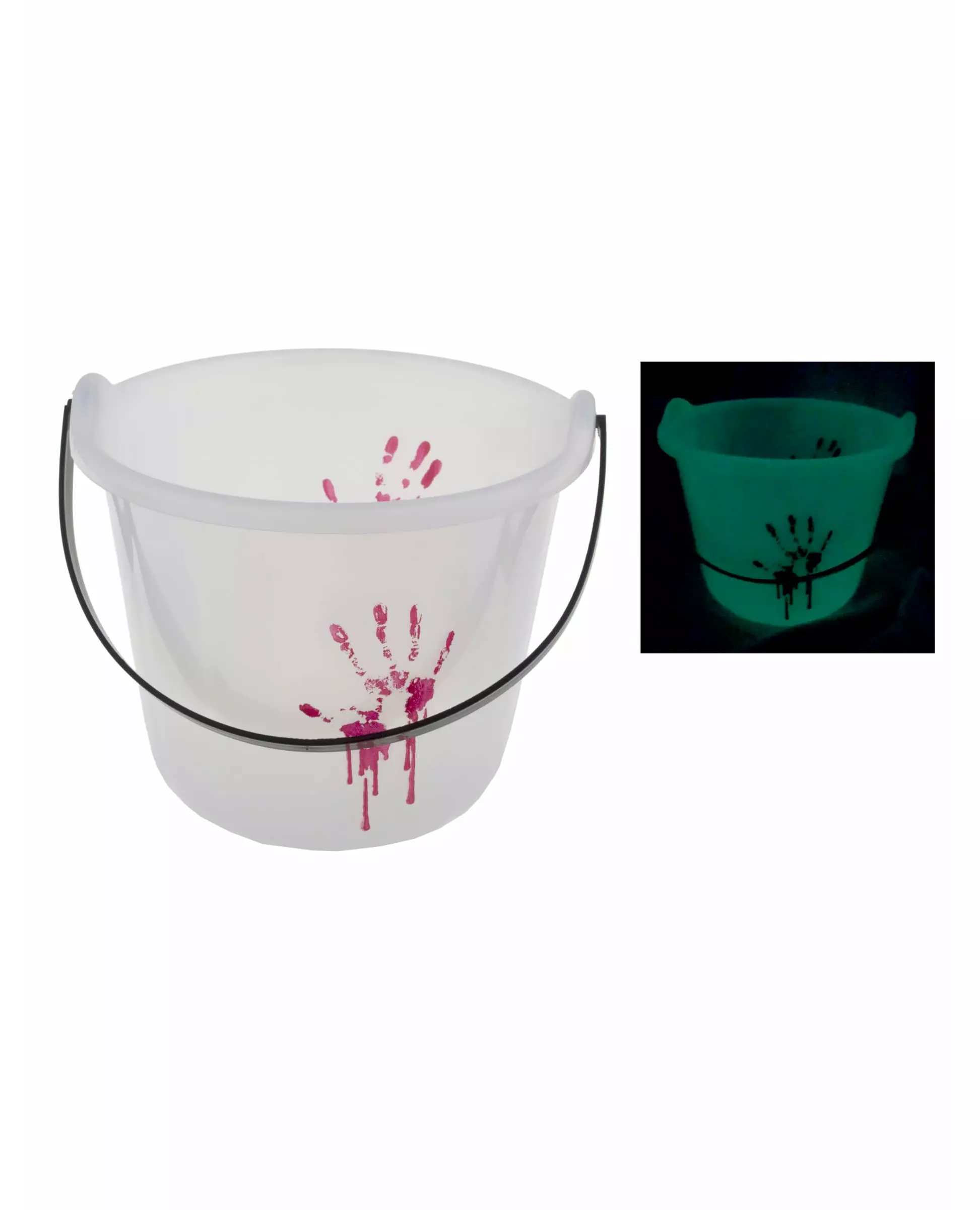 Bær Halloween-godteriet ditt i denne bøtta! Denne Halloween-bøtta i plast er fosforescerende. Den er hvit med et blodig håndmotiv og har et svart håndtak, perfekt for å ta den med overalt! La den stå i lyset før du går ut, den vil lyse i mørket! Denne bøtta vil være ideell for godterijakt på Halloween-kvelden!. Inkludert tilbehør: 1 bøtte Materiale: Plast