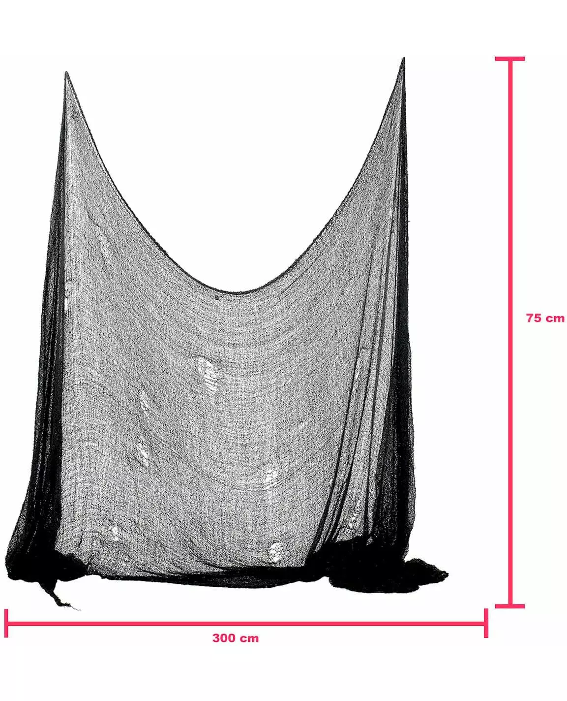 Et mørkt slør for en makaber atmosfære Dette svarte Halloween-dekorasjonssløret på 300 x 75 cm er perfekt for å skape en forstyrrende atmosfære i hjemmet ditt. Med sitt fine, slitte materiale kan det brukes til å dekke forskjellige overflater for en uorganisert og spøkelsesaktig effekt. Den generøse størrelsen gjør at det kan henges eller draperes som du ønsker. En rask løsning for å fordype gjestene dine i en mørk og avslappende atmosfære. Inkludert tilbehør: 1 svart laken Materiale: Stoff