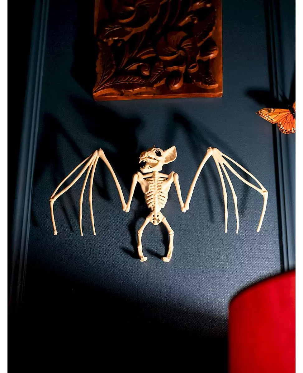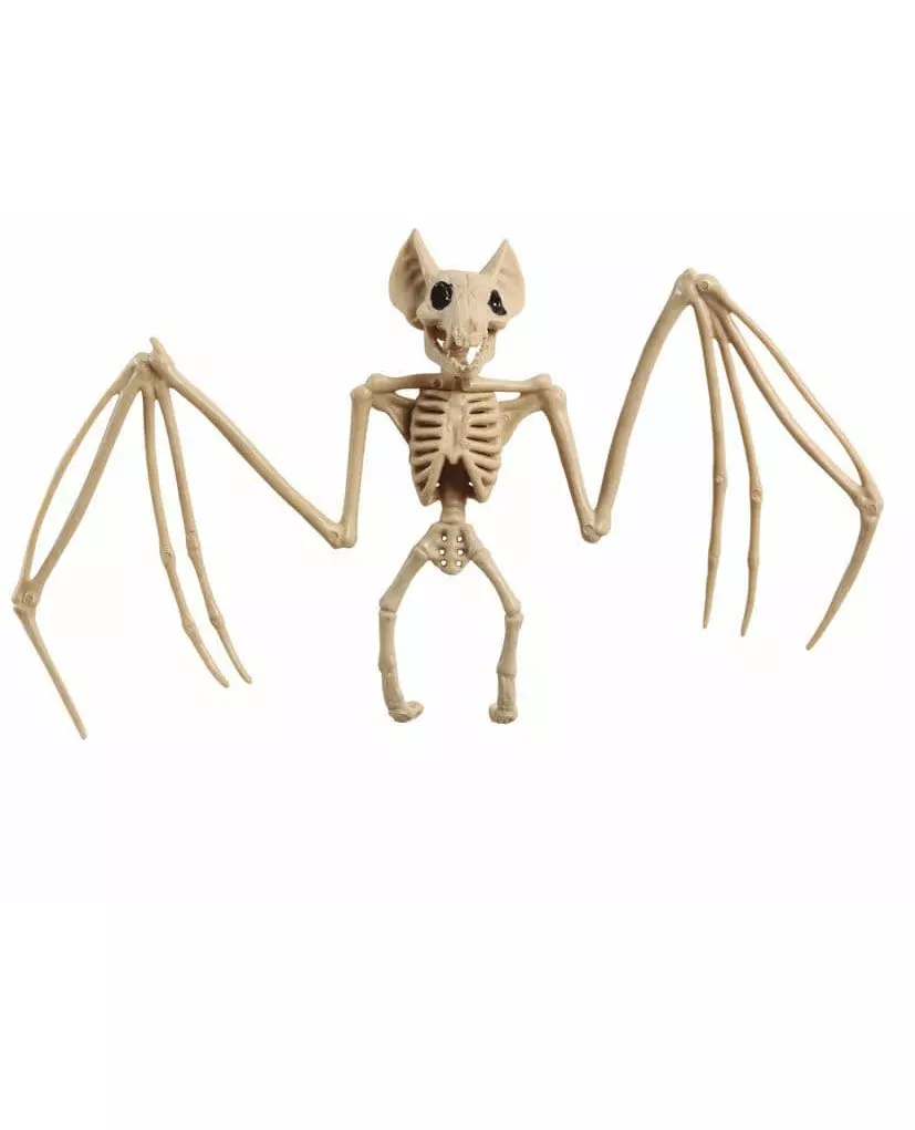 Pass på hodet ditt! Dette flaggermusskjelettet måler omtrent 30 x 17 x 5 cm. Laget av plast, er det veldig realistisk. Det forestiller en flaggermus med åpne vinger. Denne dekorasjonen vil perfekt fullføre skjelettromsdekorasjonen din til Halloween! Inkludert tilbehør: 1 flaggermusskjelett Materiale: Plast