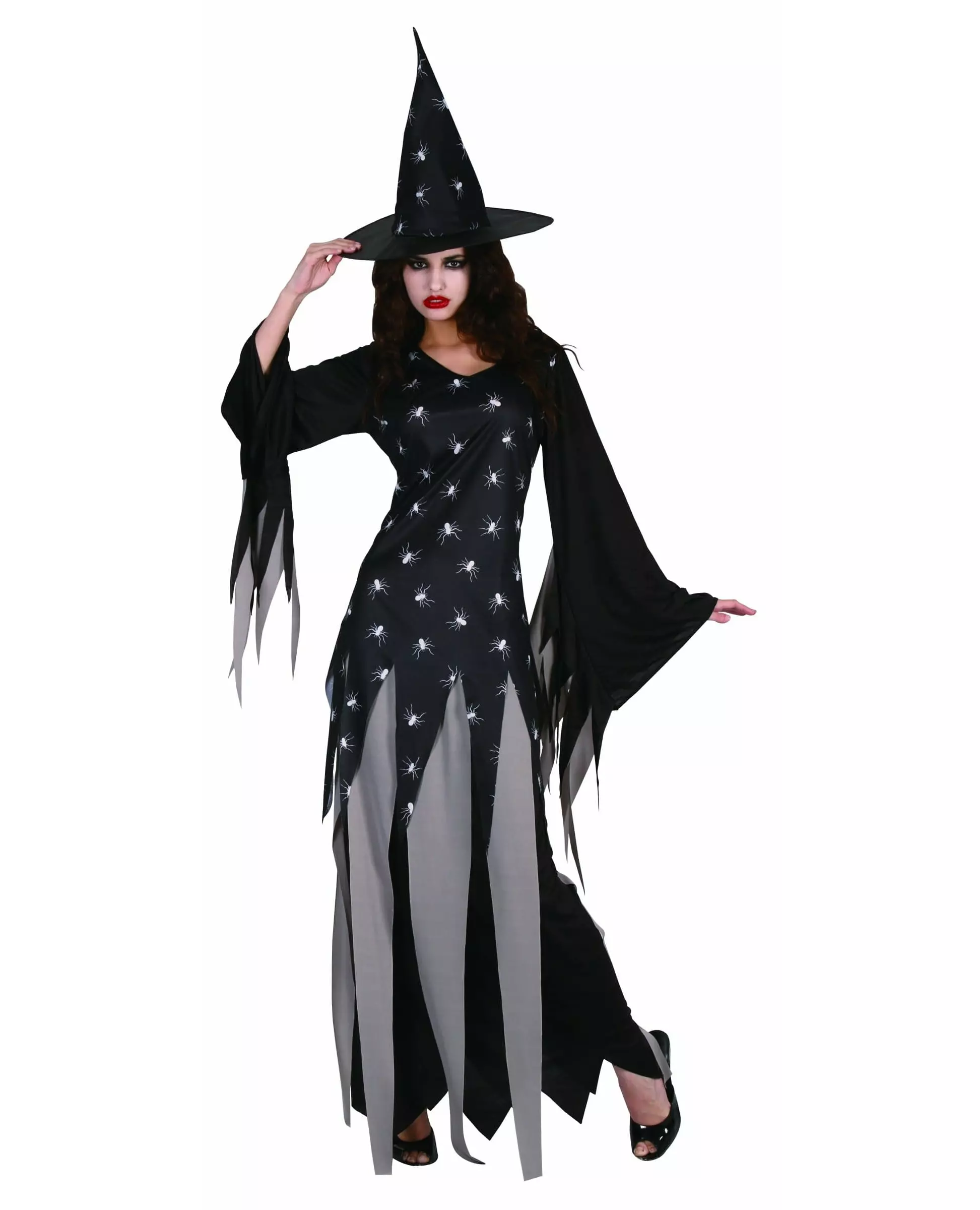 Blondekjole! Dette Halloween-heksekostymet for kvinner består av et skjørt, en topp og en hatt. Skjørtet er svart og har et sagtannmønster nederst. Det har grå frynser foran. Toppen er også snøret og faller nedenfor midjen. Den er dekorert med edderkoppformede mønstre foran. Grå og svarte frynser er festet til ermene og midjen. Til slutt vil en spiss hatt sette prikken over i-en på dette heksekostymet. (Sko ikke inkludert). Dette kostymet er perfekt for å spille en mystisk og flamboyant heks på Halloween-kvelden. Inkludert tilbehør: Topp Skjørt Hatt Materiale: 100 % polyester Stell: Hånd- eller maskinvask Mål: Toppen måler ca. 98 cm lang og skjørtet måler 100 cm lang.