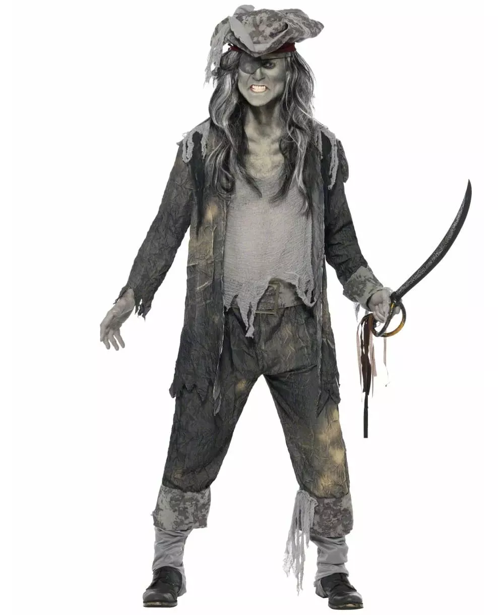 Hatt inkludert! Dette piratspøkelseskostymet for menn består av en jakke, bukser og en hatt (sabel, sko, parykk og øyelapp er ikke inkludert). Buksene er grå og har en elastisk linning. Et belte og støveltrekk er sydd foran. Den matchende jakken har lange ermer. Den er kamskjellformet i endene. Et slitt nett er sydd på en del av jakken. En hatt passer også til dette kostymet. Dette settet vil være ideelt for Halloween-festen din eller andre utkledningsarrangementer. Inkludert tilbehør: Jakke Bukser Hatt Materiale: 100 % polyester Vedlikehold: Håndvask