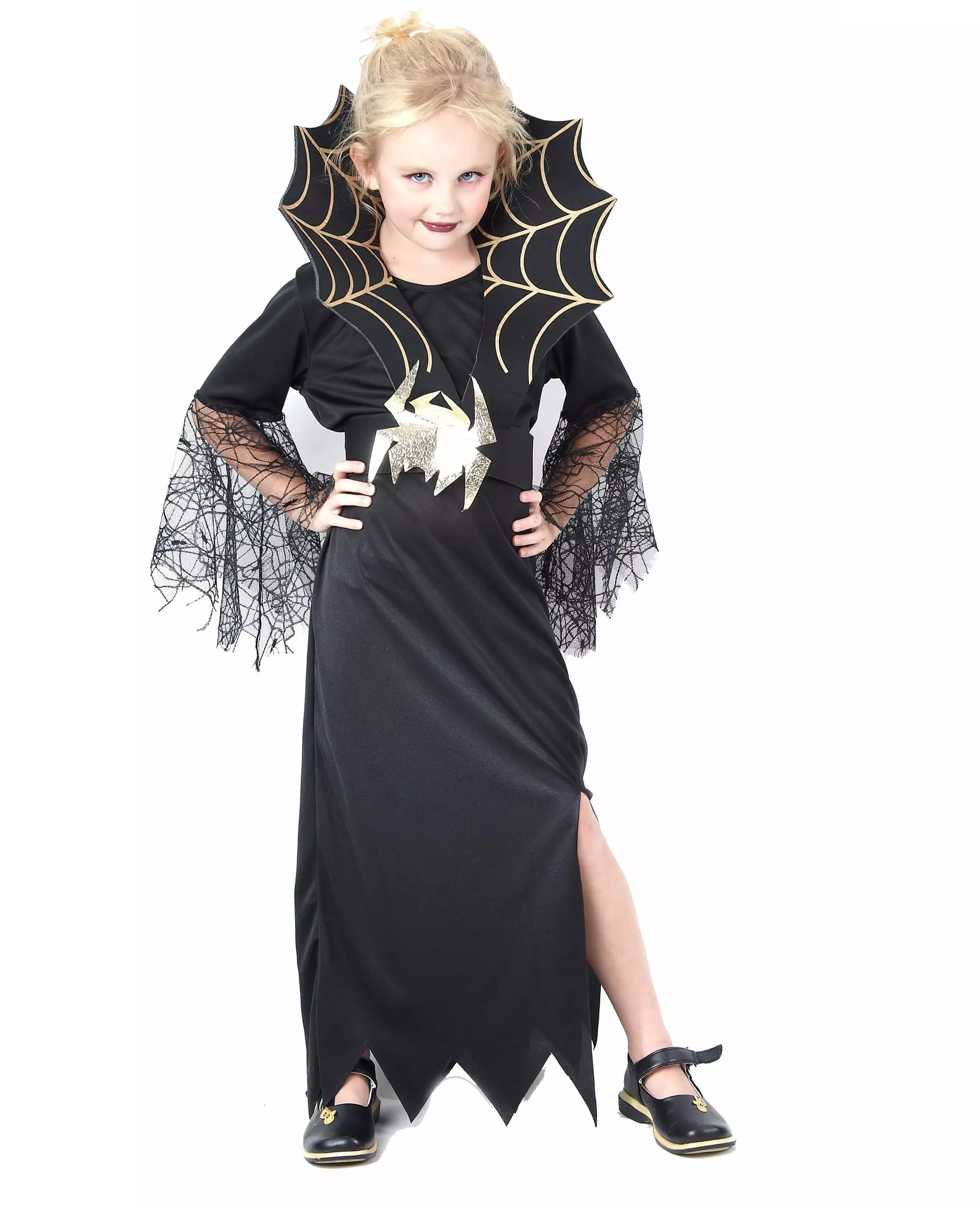 Halloween-kostyme til jenter med gyllent edderkoppheks
