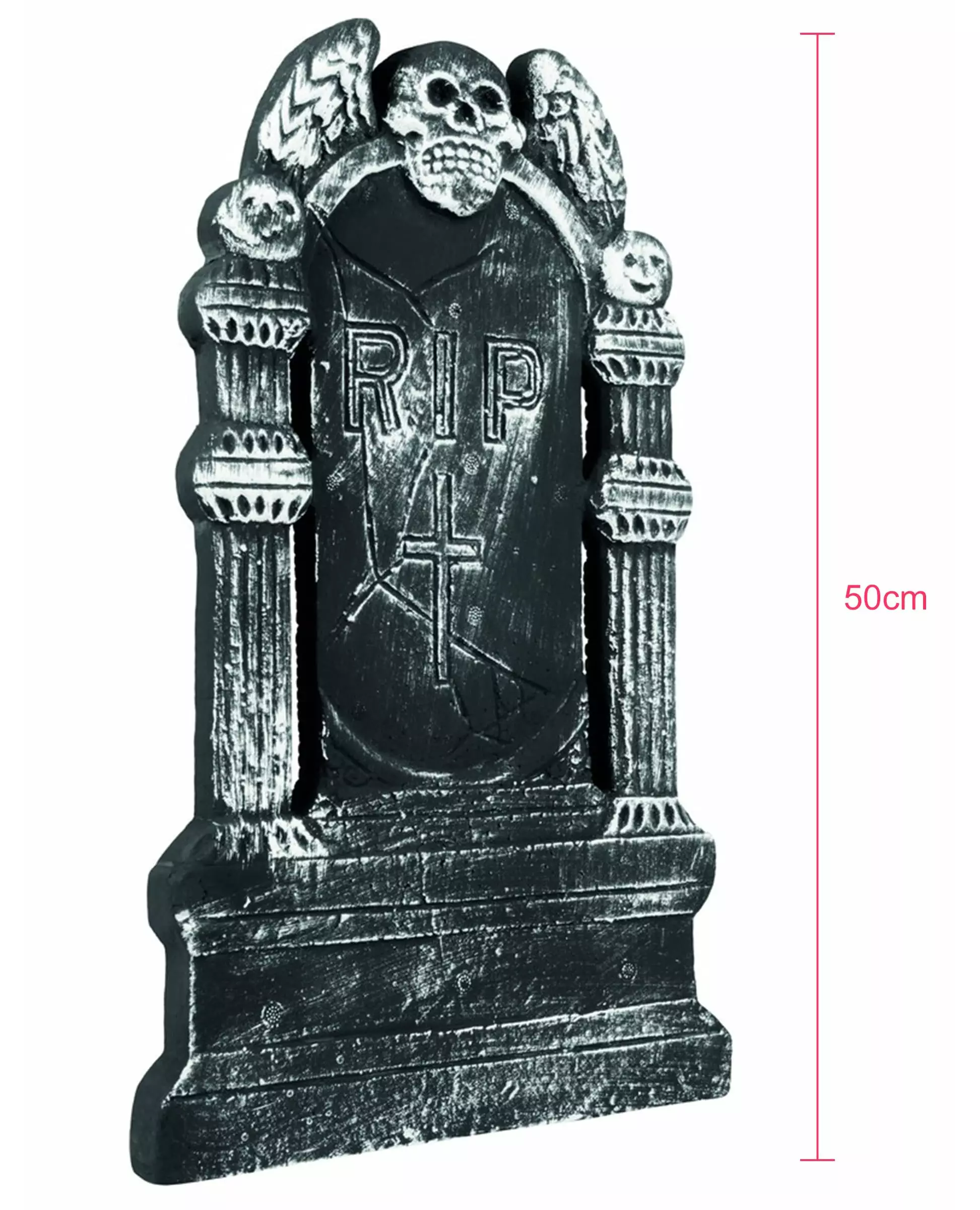 Lag en skummel dekorasjon hjemme på Halloween-kvelden! Denne gravsteindekorasjonen er laget av polystyren. Den måler omtrent 50 x 30 cm. Den er svart med noen hvite merker som fremhever den aldrede steineffekten. Denne dekorasjonen kan plasseres inntil en vegg for å lage en mini-kirkegård hjemme på Halloween-kvelden. Inkludert tilbehør: 1 gravstein Materiale: Polystyren