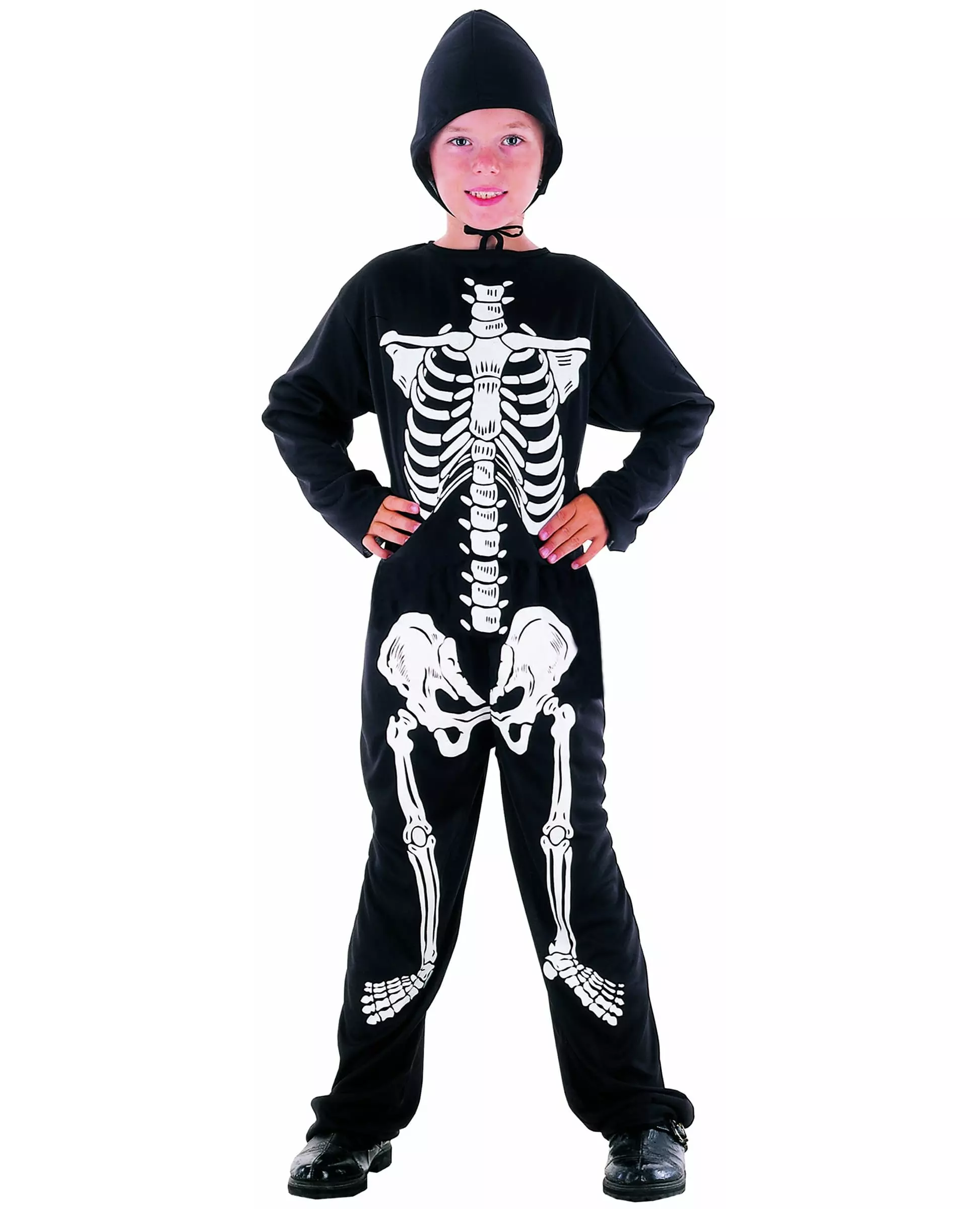 Jumpsuit med flockede bein! Dette Halloween-skjelettkostymet for gutter består av en lett, elastisk jumpsuit som lukkes bak og har flockede bein. Antrekket inkluderer også en svart hette med borrelås. Dette kostymet er ideelt for Halloween-kvelden eller andre utkledningsarrangementer. Inkludert tilbehør: Jumpsuit Hette Materiale: 100 % polyester Vedlikehold: Renseri