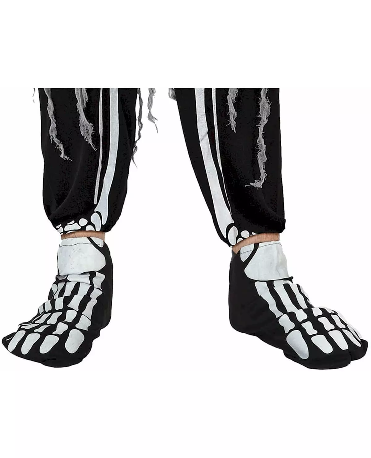Bli et skjelett fra topp til tå. Disse skjelettskoene er for voksne. De er helt svarte med et skjelettfotavtrykk på toppen. De måler omtrent 32 cm i lengde når de legges flatt og er elastiske. Disse skoene vil være perfekte for å fullføre skjelettkostymet ditt på Halloween-kvelden. Inkludert tilbehør: 2 skoovertrekk.