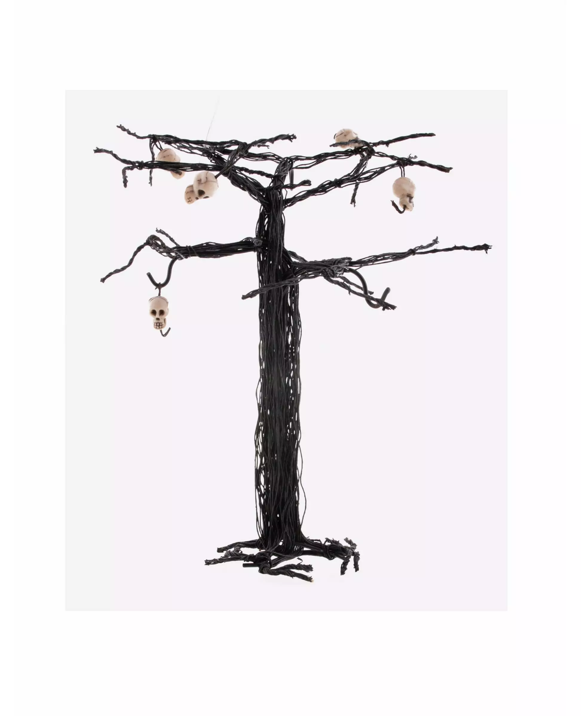 Den onde skogen kommer hjem til deg! Dette Halloween-treet med hodeskalle måler omtrent 28 cm i høyden og 25 cm i bredden. Det er laget av ståltråd som er viklet rundt seg selv, og danner et tre med flere grener. Basen, også laget av ståltråd, lar dekorasjonen stå oppreist. I tillegg er fem mini-hodeskaller inkludert i settet. Du kan henge dem direkte på grenene ved hjelp av små lisser. Dekorer Halloween-festen din med dette søte, men skumle treet! Enten det er innendørs eller utendørs, vil denne dekorasjonen gjøre et inntrykk! Inkludert tilbehør: Hodeskalletre Materiale: Ståltråd